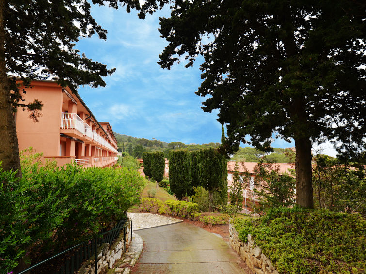 The area of Capo D'Arco (private access with guard) is surronded by an oasis of natural beauty. Beautiful resort "Capo d'Arco", surrounded by trees. In the resort Capo d'Arco, in a quiet position, 500 m from the sea, 500 m from the beach, direct access to the beach. For shared use: terraced garden, natural garden, 2 swimming pools (seasonal availability: 01.Jun. - 30.Sep.). Shower/WC in the pool area, children's pool, outdoor shower, private beach, tennis (extra), beach volleyball, garden furniture. In the complex: restaurant, bar, table tennis. Motor access (500 m via unmade road). Parking. Supermarket 5 km, bus stop 3.3 km, ferry "Rio Marina" 13 km, sandy beach "Brigantino" 500 m (small). Nearby attractions: Porto Azzurro 5 km, Capoliveri 11 km, Rio nell'Elba 13 km, Portoferraio 18 km. Please note: car recommended. The owner does not accept any youth groups. Guarded residence. Additional accommodations can be booked. Guests can use the swimming pools (sea water and fresh water) free of charge except the use sunloungers and umbrellas (extra). Bar, restaurants and market (01.06/15.09). WIFI signal is garantuee only near the pool area (fresh water one). Opening dates and times of the swimming pools and restaurants may vary if demand is not sufficient or in adverse weather conditions.4-room apartment 100 m2 on 1st floor. Spacious and bright, comfortable furnishings: living room with dining table and TV. Exit to the terrace. 1 double bedroom with fan. Exit to the balcony. 1 room with 1 bed, 1 pull-out bed and fan. Exit to the balcony. 1 room with 2 beds and fan. Exit to the terrace. Open kitchen (mini-oven, dishwasher, 4 induction hot plates, kettle). Bathroom, shower/bidet/WC. No heating option. Balcony, terrace roofed. Terrace furniture. Marvellous view of the sea. Facilities: washing machine, baby cot for up to 2 year olds, hair dryer. Parking at 70 m. Please note: non-smoking house. No mandatory extra charges to be paid on-site. IT049021C2H6WAVJZG