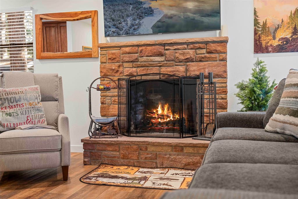 Relax and warm up beside a wood burning fireplace, chill on the recliner, take a nap on one of the couches, lounge or grab a throw blanket and watch a movie on the Smart TV (Chromecast or AirPlay from your accounts on Netflix, Disney+, Hulu, Amazon Prime, YouTube and much more).