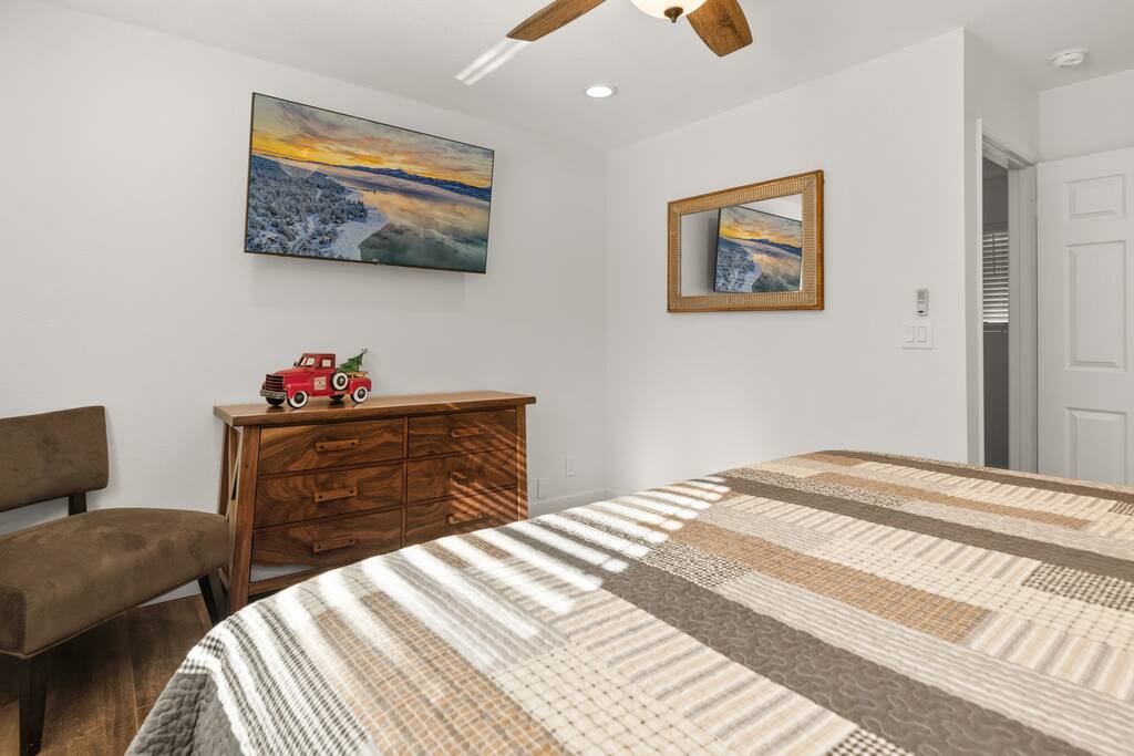 2) with a Queen bed (there is a door that will remain locked leading to a small balcony deck. Owner access only, not for guests)