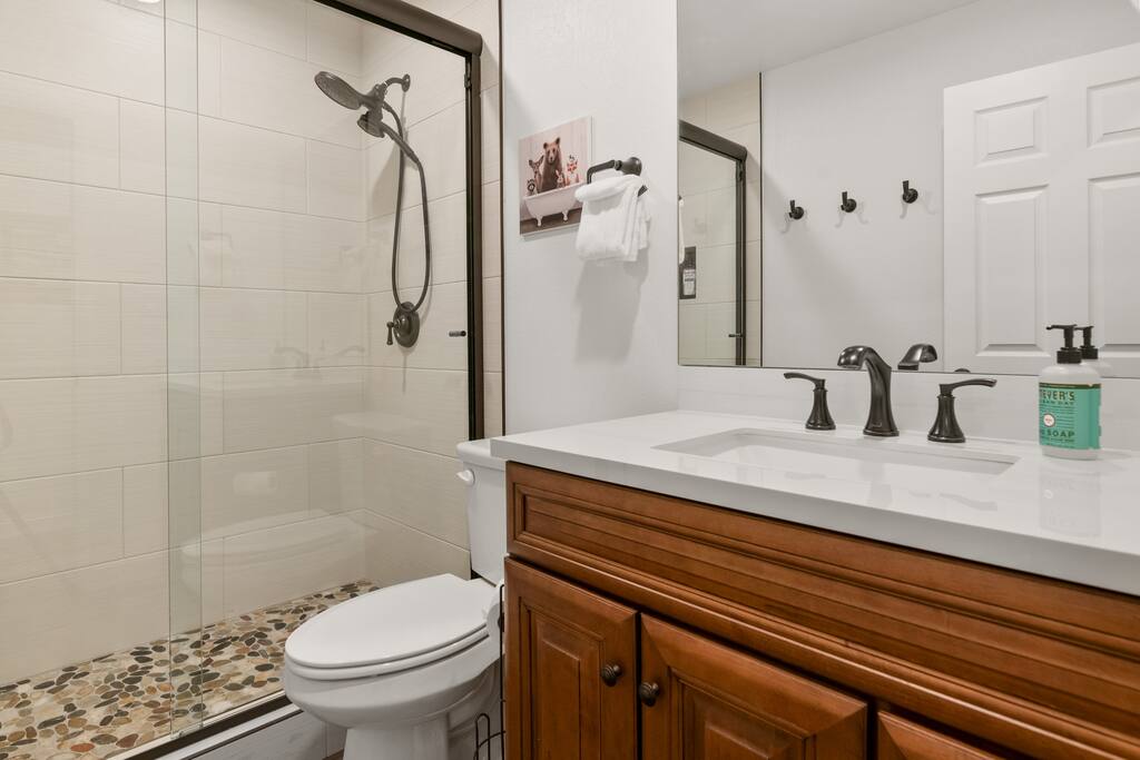Spa-like bathroom experiences awaits you! Walk into oversized showers with a natural smooth river rock tile floor and adjustable handheld showerheads. Luxury hygrocotton bathroom towels, plenty of shampoo, conditioner, and body soap.