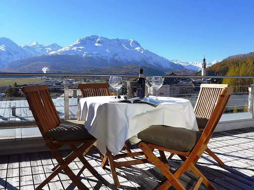 Samedan 8 km from St. Moritz: Modern apartment house "Chesa Crusch", 4 storeys. In the resort 500 m from the centre of Samedan, in a sunny position on a slope, in the residential district, 7.5 km from the lake. In the house: storage room for bicycles, storage room for skis, central heating system, washing machine, tumble dryer (for shared use, extra), drying room. In Winter: please take snow chains, 4x4 car recommended in winter. Communal covered parking space n 14 at the house. Shop 300 m, supermarket 700 m, restaurant 150 m, bakery 150 m, café 150 m, bicycle rental 3.5 km, bus stop "Samedan, Post" 160 m, railway station "Samedan" 400 m, indoor swimming pool 7 km, thermal baths "Mineralbad & Spa Samedan" 500 m, lake St. Moritzer See 7.5 km. Golf course (18 hole) 1.2 km, surf school 13 km, tennis 1.1 km, indoor tennis centre 8.7 km, minigolf 8.5 km, riding stable 6.3 km, walking paths from the house, cycle lane 500 m, cable car 3.8 km, ski lift 800 m, ski rental 210 m, ski school 3.8 km, children's ski school 3.8 km, sled run 3.6 km, cross country ski track 1.2 km, ice rink 1.1 km, children's playground 800 m. Nearby attractions: Chesa Planta in Samedan 400 m, Segantini Museum in St. Moritz 9.5 km, Nietzsche Haus in Sils-Maria 17 km, Olympic Bob Run St. Moritz 5.6 km, Kirche St. Maria in Pontresina 7.6 km. Well-known ski regions can easily be reached: Corviglia - Piz Nair 3.8 km, Corvatsch - Furtschellas 14 km, Diavolezza - Lagalb 18 km. Well-known lakes can easily be reached: St. Moritz See 7.5 km, Silvaplana See 13 km, Silser See 17 km. Hiking paths: Corviglia - Piz Nair, Muottas Muragl, Val Bever & Val Rosegg."Chesa Crusch 7", 3-room penthouse 100 m2 on 2 levels. Spacious and bright, modern and stylish furnishings: living/dining room with open-hearth fireplace (only for decoration), TV and radio. Large, open kitchen (oven, dishwasher, 4 ceramic glass hob hotplates, toaster, freezer, electric coffee machine, Capsules for coffee machine (Nespresso) extra). Sep. WC. Heating. On the lower ground floor: 1 room with 1 double bed (2 x 90 cm, length 190 cm). 1 room with 1 double bed (2 x 85 cm, length 190 cm). Bath/bidet/WC, shower/bidet/WC. Wooden floors. Large terrace 40 m2, south facing position. Terrace furniture. Marvellous panoramic view of the mountains and the resort. Facilities: hair dryer. Internet (WiFi, free). Garage space n 14 on the property (1 car), height 235 cm, width 235 cm. Please note: not suitable for small children. Non-smokers only.