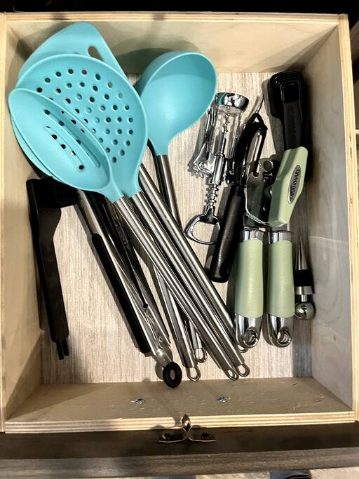 We offer a fully equipped kitchen with a full-sized fridge and freezer as well as a microwave, toaster, oven, and rice cooker.
