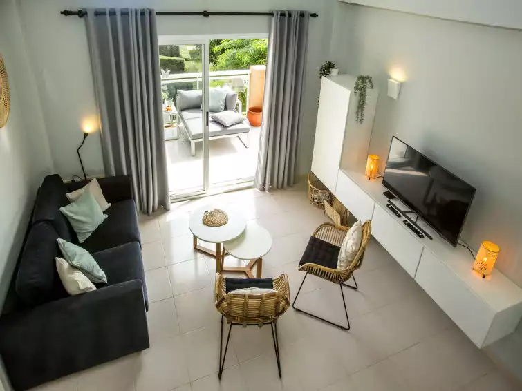Large, very beautiful, very comfortable residence "ClemenVilla I". In the resort 3 km from the centre of Dénia, in a quiet, sunny position, 650 m from the sea, 650 m from the beach. For shared use: swimming pool angular (25 x 12 m, depth 80 - 210 cm, seasonal availability: 01.Jan. - 31.Dec.) with internal staircase. Children's pool, outdoor shower, parking at the house. Grocery 700 m, supermarket 2 km, restaurant 450 m, bar, café 500 m, bus stop 600 m, railway station 4 km, ferry 4 km, sandy beach "Playa de Les Marines" 650 m. Sports harbour 4 km, surf school 1 km, tennis 2 km. Please note: no lift. The owner does not accept any youth groups."ClemenVillas I", 4-room apartment 80 m2. Spacious and bright, very comfortable and beautiful furnishings: living/dining room with satellite TV, international TV channels, air conditioning and forced-air heating. Exit to the terrace. 1 room with 1 french bed (2 x 90 cm, length 200 cm), TV, air conditioning and forced-air heating. 1 room with 2 beds (90 cm, length 200 cm), air conditioning and forced-air heating. Exit to the terrace. Open kitchen (dishwasher, 3 ceramic glass hob hotplates, toaster, microwave, freezer, electric coffee machine). Exit to the terrace. Shower/WC. Top floor: (steep stair), 1 room with 1 french bed (2 x 90 cm, length 200 cm), air conditioning and forced-air heating. Large terrace, west facing position, small terrace, east facing position. Terrace furniture. Marvellous view of the mountains, the valley and the countryside. Facilities: washing machine, iron, hair dryer. Internet (WiFi, free). Parking space n 8. VT-495743-A // Reg. Nr.: ESFCTU000003045000373959000000000000000000VT-495657-A1