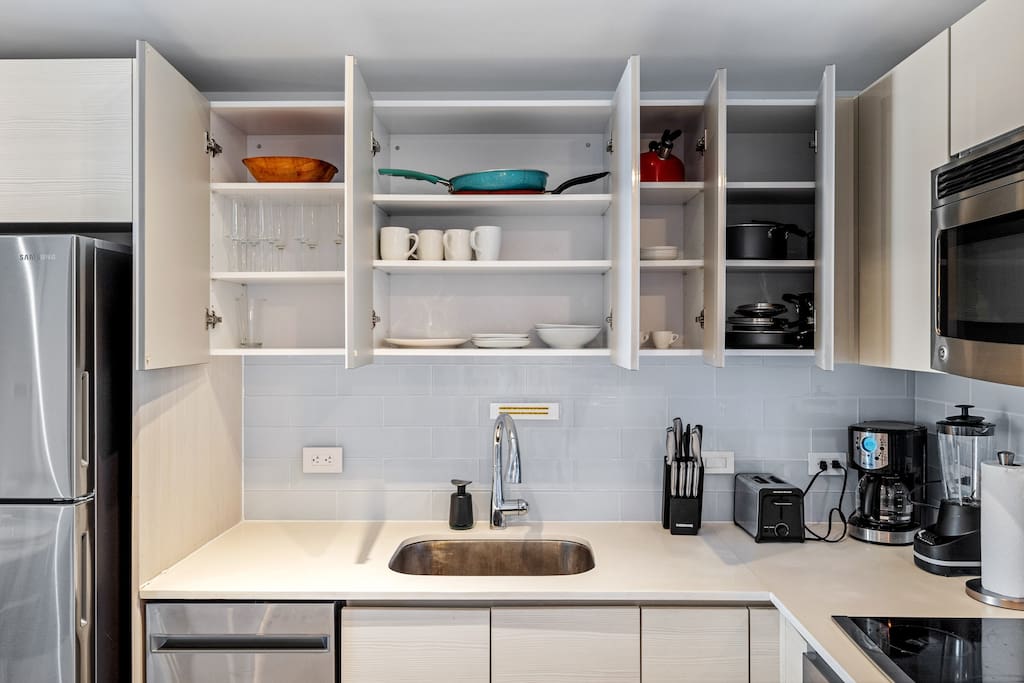 The fully-stocked kitchen invites you to savor the simple joys of cooking, whether it's a quick breakfast before a day of adventure or a leisurely dinner shared with loved ones.