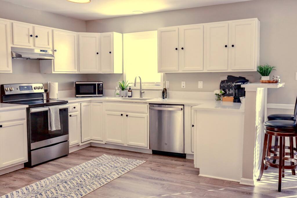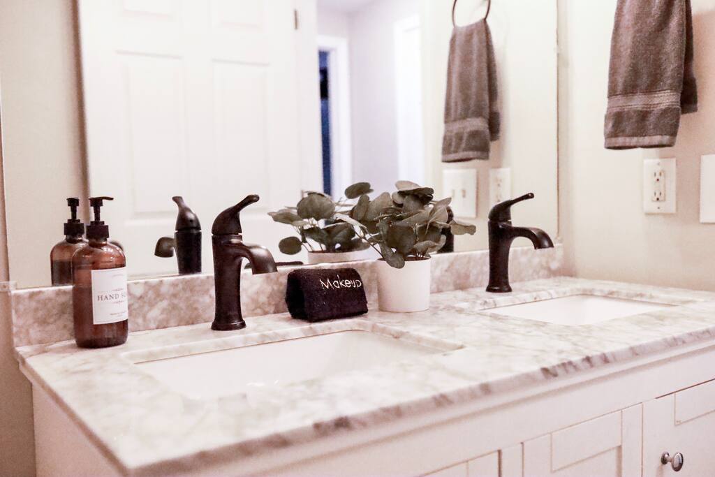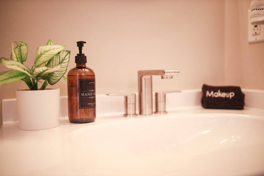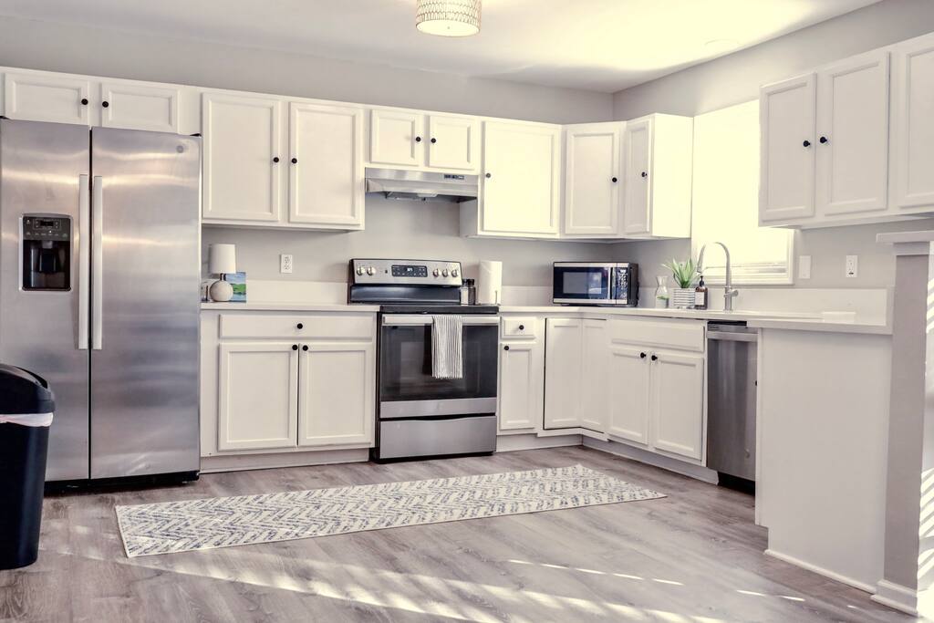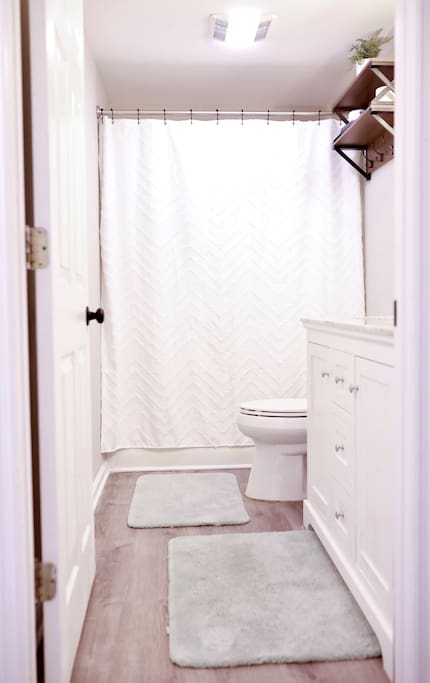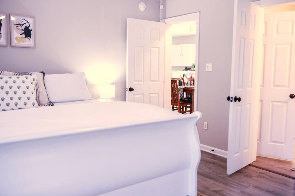 The 5 bedrooms (1 king downstairs, 1 king and 3 queens upstairs) are tastefully decorated, each featuring comfortable beds ensuring a good night's sleep after a day of exploring the nearby attractions. The two bathrooms (1 downstairs & 1 upstairs) are conveniently located, one on each floor to serve all guests, equipped with amenities and fresh towels.