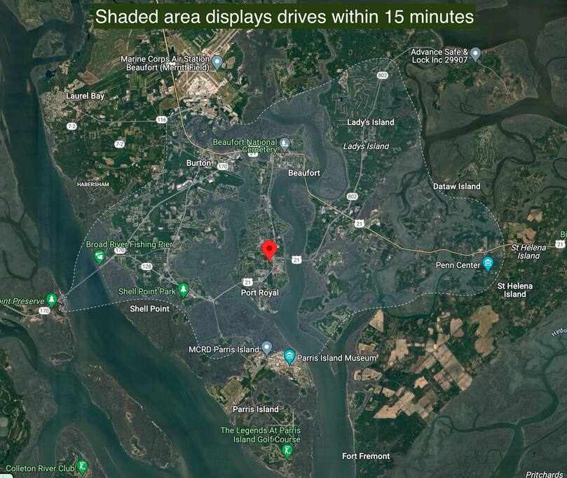 •10 minutes to Parris Island, Beaufort and Port Royal