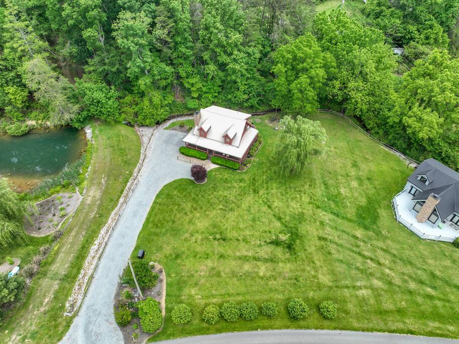 Deck: A wrap-around deck provides stunning views and features a hot tub, outdoor dining area, and access to the creek.