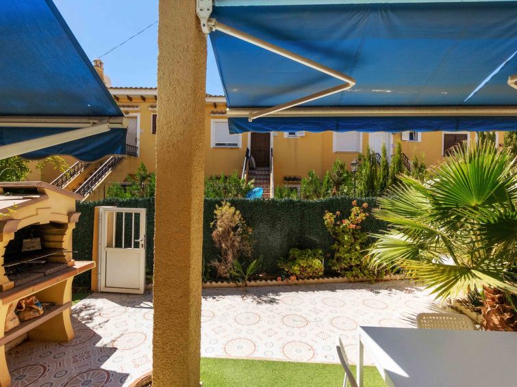 Terraced house "La Rosaleda". 2 m from the centre of Torrevieja, 600 m from the sea, 750 m from the beach. For shared use: property (fenced), swimming pool (5 x 3 m, seasonal availability: 01.Jan. - 31.Dec.). Terrace. Grocery, supermarket 450 m, bus stop "Estación Autobuses Torrevieja" 2 km, railway station "Orihuela" 30 km, sandy beach "Playa de los Locos" 650 m. The pool is only shared with the guests of the house next door ES9755.647.1."Elena", 3-room terraced house 66 m2. Bright, renovated in 2023, comfortable and beautiful furnishings: living/dining room with digital TV, air conditioning and forced-air heating. Exit to the terrace. 1 room with 1 french bed, air conditioning and forced-air heating. 1 room with 2 beds. Kitchen (oven, 4 ceramic glass hob hotplates, toaster, kettle, microwave, electric coffee machine). Shower/WC. Terrace. Barbecue. Facilities: washing machine, iron, hair dryer. Please note: non-smoking house. R000000001