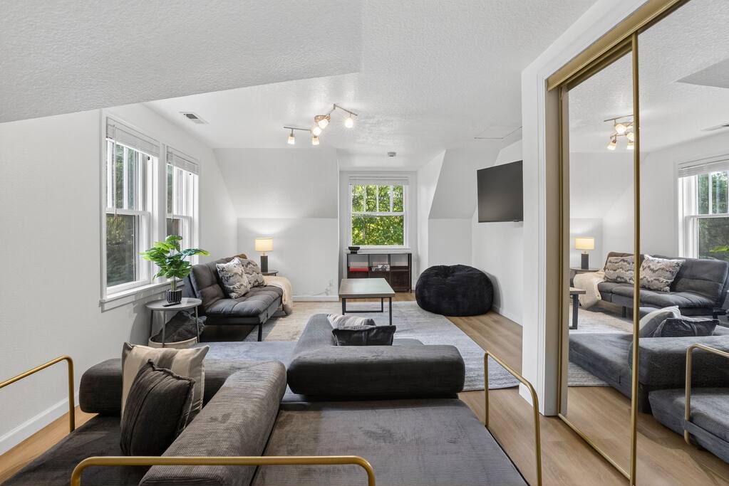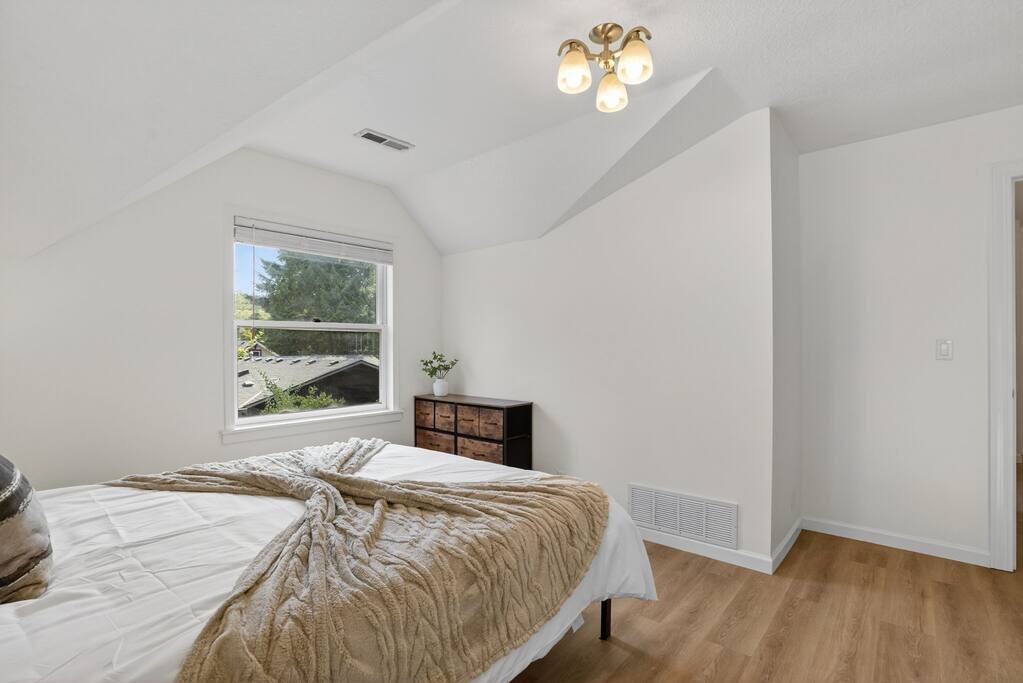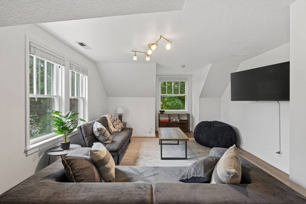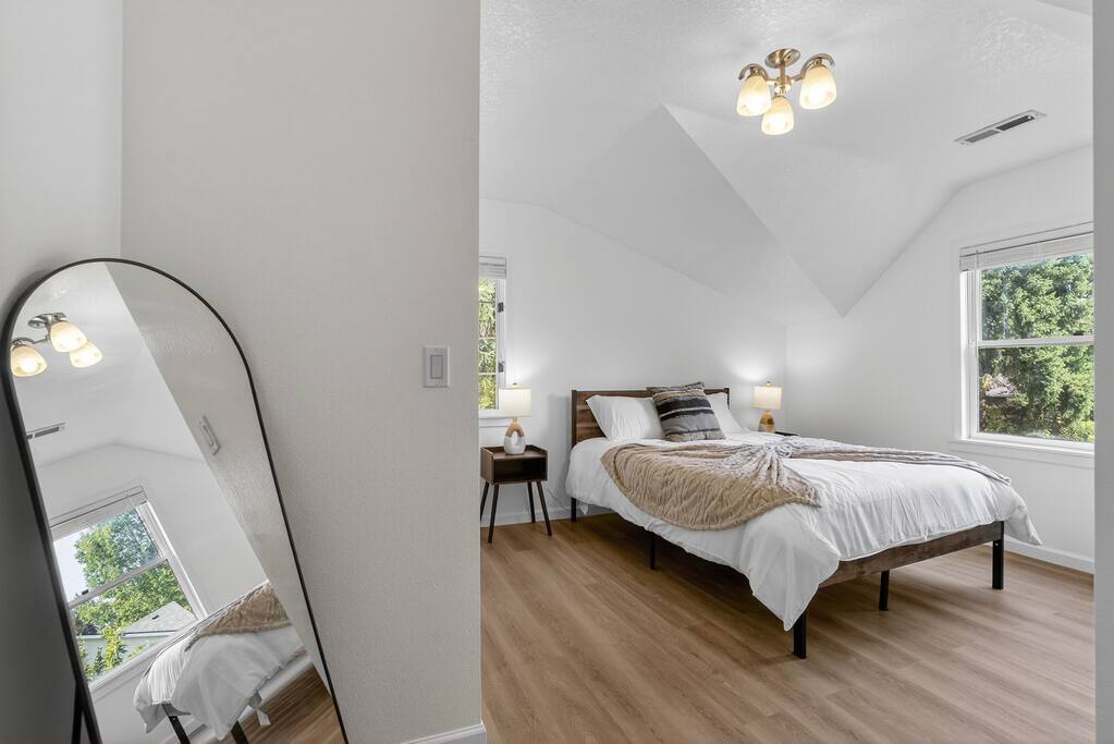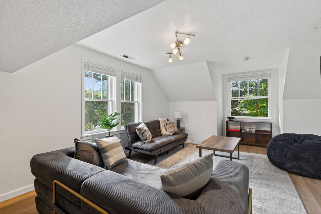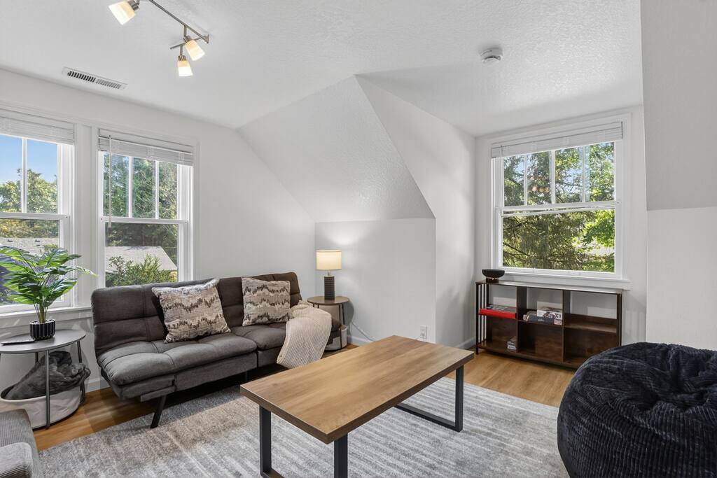 Spacious 3-bedroom, 2-bath home with a large private yard, shaded by mature trees and complete with outdoor dining. Inside, enjoy multiple lounging areas, a full kitchen, and cozy bedrooms. Located minutes from Washington Square Mall, local breweries, food carts, and family-friendly parks.