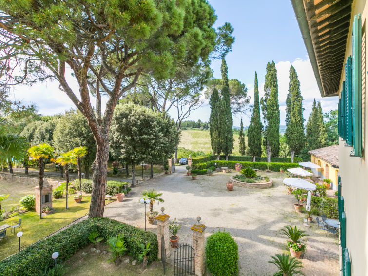 Cosy country house "Giuggiolo", surrounded by trees and vineyards. 3 houses in the residence. 4 apartments in the residence. In the hamlet Casaglia 4 km from the centre of Poggibonsi, 11 km from the centre of San Gimignano, 30 km from the centre of Siena, in a sunny position, in the countryside. For shared use: large, beautiful garden 5'000 m2 (fenced) with plants and trees, meadow, swimming pool (14 x 7 m, depth 120 - 160 cm, seasonal availability: 02.May. - 03.Oct.). Terrace, pool maintenance by the owner/gardener. Heating to be paid on the spot (01.Nov. - 31.Mar.). 800 m long motor access to the grounds (via unmade road). Parking on the premises. Supermarket 2 km, railway station "Poggibonsi" 4 km. Please note: residence with electric gates. The owner lives in the same residence. Wine tasting in a wine cellar near San Gimignano 17 km away 1x per stay included (on request)."Giuggiolo - Giuggiolo 2", 2-room terraced house 43 m2, on the ground floor. Beautiful and cosy furnishings: living/sleeping room with 1 double sofabed, dining table and satellite TV. Exit to the terrace. 1 room with 1 french bed (160 cm). Exit to the garden. Kitchenette (1 hot plate, 3 gas rings, kettle, freezer, electric coffee machine). Shower/bidet/WC. Gas heating. Terrace furniture. Facilities: Internet (WiFi, free). Please note: non-smokers only. Maximum 2 small pets/ dogs allowed. Private entrance. IT052022C2OGHCUI3U