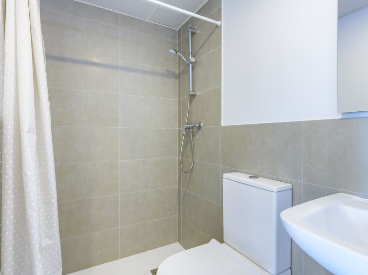 Modern residence "Gran Canet", built in 2022. In a quiet, sunny position, 900 m from the sea, 900 m from the beach. For shared use: garden with lawn and trees, 3 swimming pools (seasonal availability: 15.Jun. - 15.Sep.). Children's pool, outdoor shower, tennis. In the complex: reception, bar, sauna, fitness room, solarium, lift. Roofed, parking at the house. Supermarket, restaurant, bar, café 800 m, bus stop 700 m, railway station 7 km, sandy beach "Canet Playa" 900 m. Sports harbour, surf school, walking paths from the house, cycle lane 900 m. Nearby attractions: Valencia 30 km. The owner does not accept any youth groups. Neighbourhood highly sensitive to noise. Quietness and good behaviour expected."Gran Canet", 3-room apartment 70 m2 on 4th floor. Comfortable and modern furnishings: large living/dining room with dining table, digital TV, flat screen, air conditioning and forced-air heating. Exit to the terrace. 1 large room with 1 french bed (160 cm, length 200 cm), shower/WC, air conditioning and forced-air heating. Exit to the terrace. 1 room with 2 beds (90 cm, length 200 cm), air conditioning and forced-air heating. Exit to the terrace. Open kitchen (oven, dishwasher, 4 induction hot plates, kettle, microwave, freezer). Shower/WC. Large terrace 20 m2, roofed. Terrace furniture. View of the mountains. Facilities: washing machine, iron, hair dryer. Internet (WiFi, free). Parking (roofed) at the house. Please note: non-smokers only. Smoke alarm. VT-53323-V // Reg. Nr.: ESFCTU000046070000318186000000000000000000VT-53323-V4