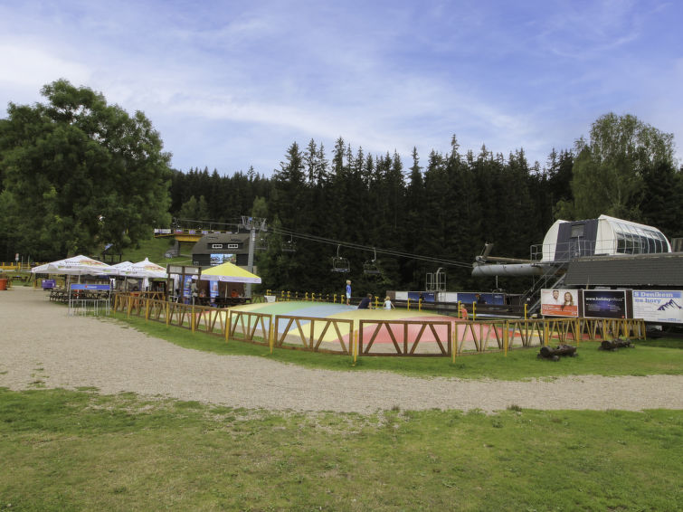 Very beautiful apartment block "Harrachov 141", 700 m a.s.l., 3 storeys. 12 apartments in the residence. 500 m from the centre of Harrachov, on the outskirts, 28 km from the centre of Jablonec nad Nisou, 12 km from the centre of Rokytnice nad Jizerou, in a quiet, sunny position, 50 m from the edge of the forest, 1.3 km from the skiing area. For shared use: property, meadow. In the house: storage room for skis. Parking (limited number of spaces) on the premises. Shop, restaurant 100 m, bar, bus stop "Harrachov centrum" 500 m, railway station "Harrachov" 3 km. Golf course (18 hole) 39 km, minigolf 600 m, ski lift 300 m, chair lift 1.3 km, slopes 300 m, ski rental 1.3 km, ski school 1.3 km, children's ski school 1.3 km, children's playground 300 m. Nearby attractions: Mumlava vodopád 2500m,Dvoračky 10 km, Kořenov 8 km, Jizerka 15 km, muzeum skla 800 m, muzeum lyží 1.5 km, Šindelka 1.5 km. Well-known ski regions can easily be reached: Harrachov ,Vosecká bouda 12 km, Příchovice 10 km, Rokytnice nad Jizerou, Labská bouda 15 km. Hiking paths: Western City Karpacz(Pl) 40 km, Park miniatury Kowary44km,Karpacz (Pl) 39 km, Giganteria Piechowice(Pl) 23 km."Mountain Nest & Pets", 2-room apartment on 1st floor. Practical furnishings: 1 room with 1 x 2 bunk beds, 1 double bed. Kitchenette (dishwasher, 1 induction hot plates, kettle, microwave, electric coffee machine) with dining table. Shower/WC. Electric heating. Box-room. Facilities: Internet (WiFi). Parking (1 car). Please note: suitable for families. Non-smokers only. Maximum 1 pet/ dog allowed.
