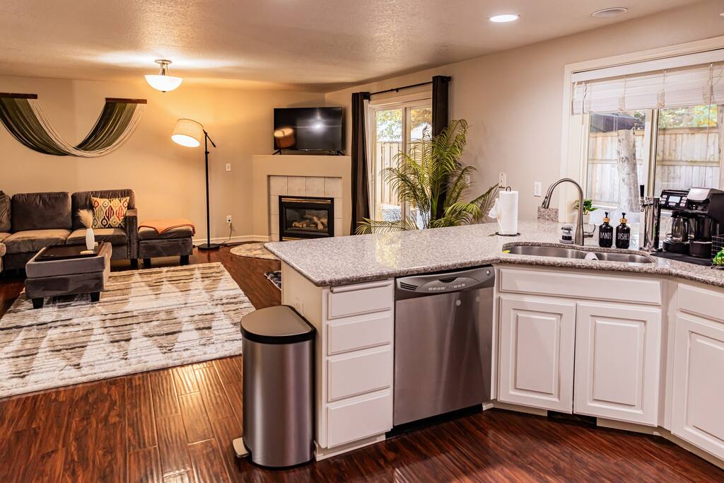 • 🍳 Fully Stocked Kitchen: Equipped with coffee maker, tea kettle, blender, slow cooker, toaster, and dishwasher for easy meal prep.