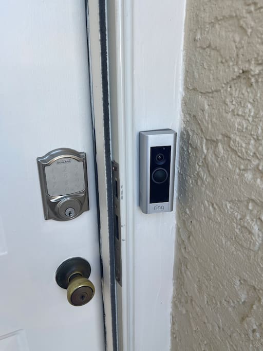 To ensure our guests' safety, we installed a Ring doorbell camera by the front door. Please check the photo section for more details.