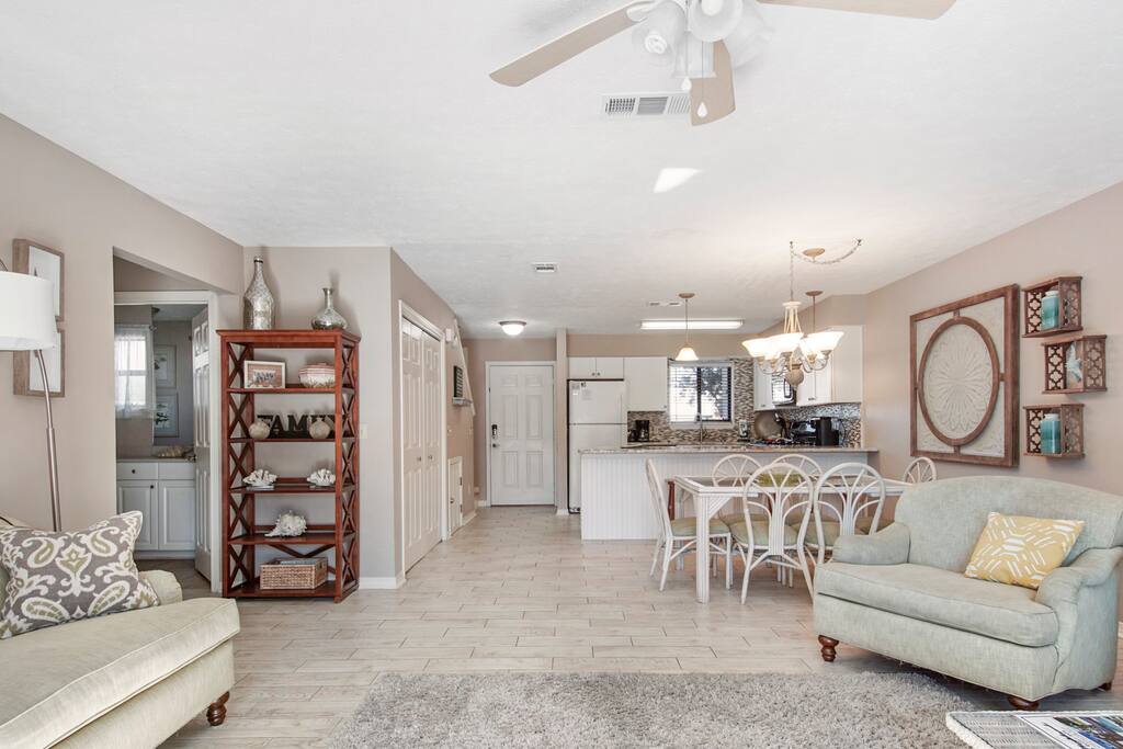 The bright living room is the heartbeat of the open-concept design area, offering a unique and upbeat setting to relax between exciting sightseeing and beach hopping.