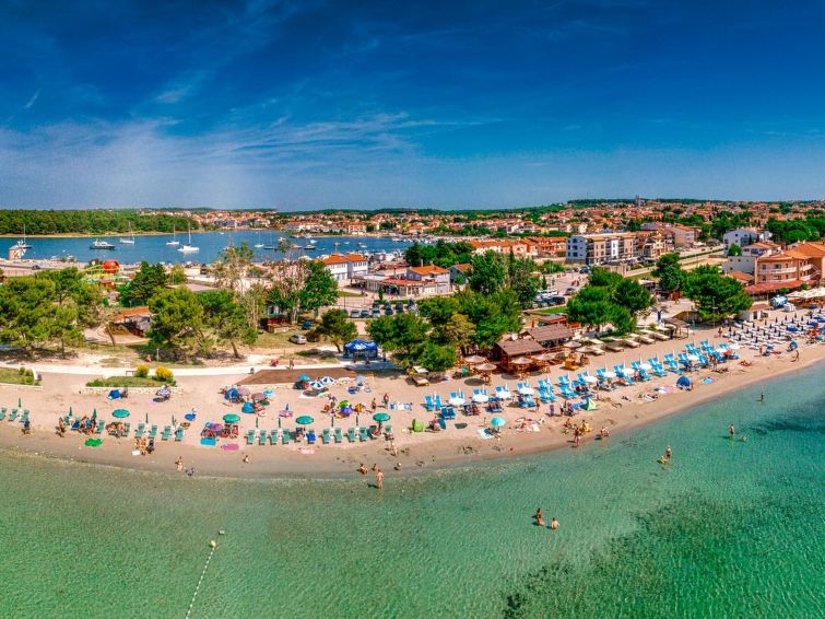 Beautiful apartment house "Hilde Red". 300 m from the centre of Medulin, in a sunny position, 100 m from the sea, 350 m from the beach. For shared use: property, garden with lawn, swimming pool angular (11 x 6 m, depth 140 cm, seasonal availability: 01.Jun. - 14.Sep.). Children's pool, barbecue. In the house: washing machine (extra) (for shared use). Parking at the house on the premises. Shop, restaurant 100 m, bus stop 260 m, sandy beach 500 m, rocky beach 350 m. Surf school 2 km. Nearby attractions: adventure park 2 km. Please note: Additional accommodations can be booked. Property ref. HR2700.100 is situated on the same property. For shared use: swimming pool oval shaped (25 m2, depth 140 cm, 01.06.-14.09.). Children's pool round (4 m diameter, depth 40 cm, 01.06.-14.09.).2-room apartment 40 m2 on 2nd floor, south facing position. Object suitable for 2 adults + 2 children. Living/dining room 27 m2 with 1 double sofabed, satellite TV and air conditioning. Exit to the terrace. 1 room with 1 french bed (160 cm, length 200 cm). Open kitchen (4 hot plates, oven, electric coffee machine). Shower/WC. Forced-air heating. Terrace 5 m2, roofed. Terrace furniture.