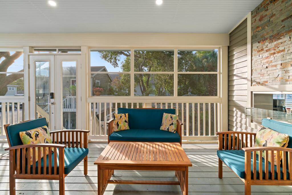 -My favorite spot of the whole house is the screened-in porch with plenty of seating for the whole family and a fireplace to snuggle next to!
