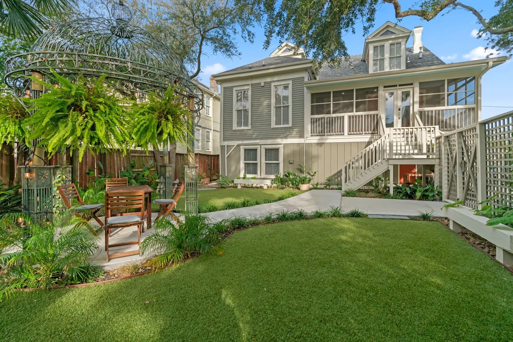 Guest entrance into the main house is via the screened porch in the backyard. You will have to walk up the stairs to get to the door with the smart lock.