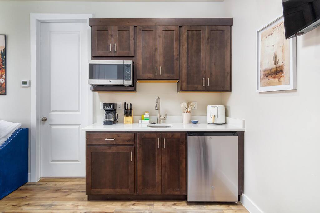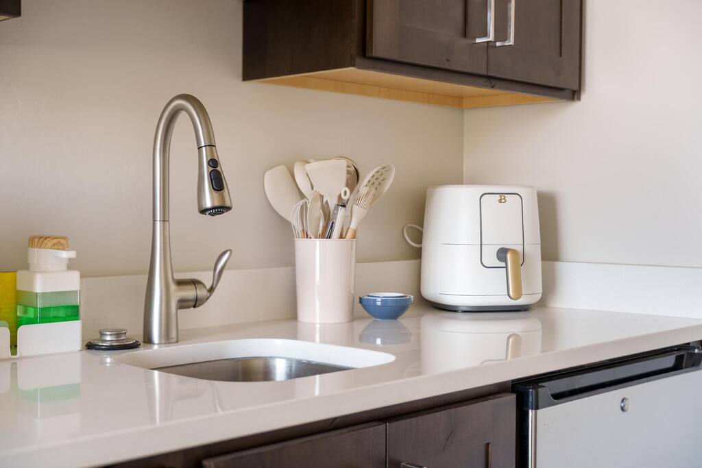 ✔️ Well-equipped kitchenette with air fryer, coffee maker, and more