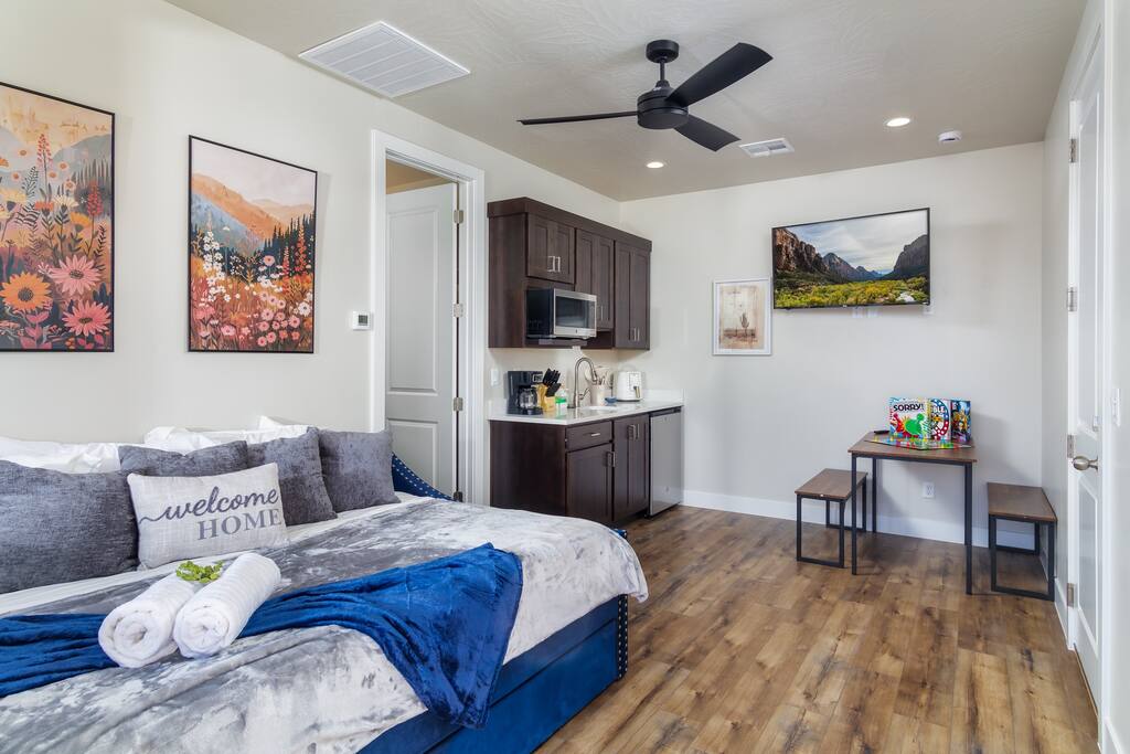 Escape to our cozy casita, just 30 minutes from Zion National Park! This all-in-one guest house features a queen day bed with a twin trundle, a kitchenette with a sink, mini fridge, hot plate,air fryer and microwave. Enjoy a private full bathroom, walk-in closet, AC/heat, and a private patio. With a private garage and driveway, parking is easy. Only 10 minutes to lakes and a water park, it's the perfect base for your adventure. Book now for comfort and convenience! COMPLETELY SEPARATE FROM HOME