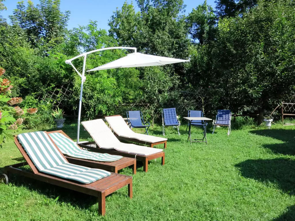 Country house "Il Carroccio", detached, surrounded by meadows and vineyards. 2 apartments in the residence. In the district of Torrazzo 2 km from the centre of San Damiano d'Asti, 15 km from the centre of Asti, 25 km from the centre of Alba, on top of a hill, in the countryside. For shared use: property 3'000 m2, garden with plants, meadow, swimming pool (above ground) (10 x 5 m, depth 130 cm, seasonal availability: 07.Jun. - 15.Sep.). Shower/WC in the pool area, patio, arbour, pool maintenance by the owner/gardener, parking at the house on the premises. Supermarket 2 km, bus stop 2 km, railway station "Asti" 15 km, outdoor swimming pool 2 km. Golf course (9 hole) 16 km. The owner does not accept any youth groups. Residence with electric gates. Obligation to wear bathing caps."Il carroccio I", 4-room semi-detached house 130 m2 on 3 levels. Practical and rustic furnishings: living/dining room with Scandinavian wood stove, dining table and satellite TV. Exit to the terrace. Small kitchen (oven, dishwasher, 4 gas rings, toaster, microwave, freezer). Hip bath/WC. Upper floor: 1 room with 2 beds. 1 room with 1 double bed. Exit to the veranda. Bath/WC. Top floor: 1 room with sloping ceilings with 2 beds and hip bath/WC. Heating. Heating available only from 01.10. to 05.05. Natural stone floors. Terrace, patio, garden. Terrace furniture, barbecue. Panoramic view. Facilities: washing machine. Internet (WiFi, free). Please note: non-smoking house. Maximum 1 small pet/ dog allowed. IT005097C1UATHVKZ9