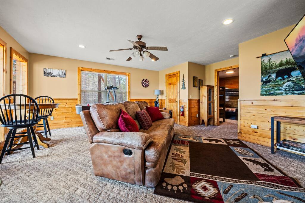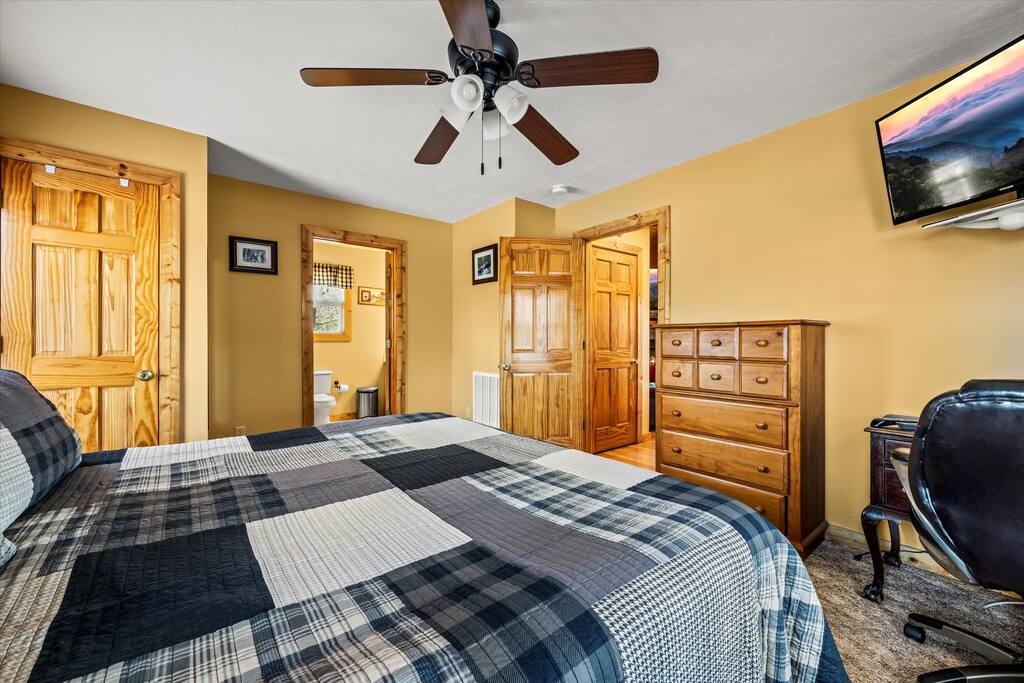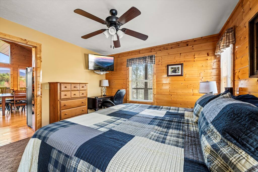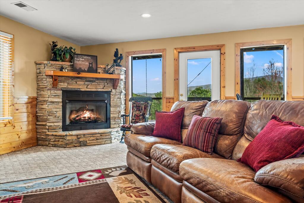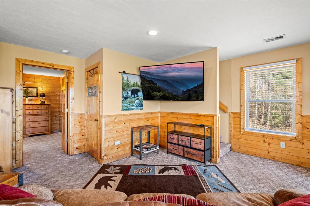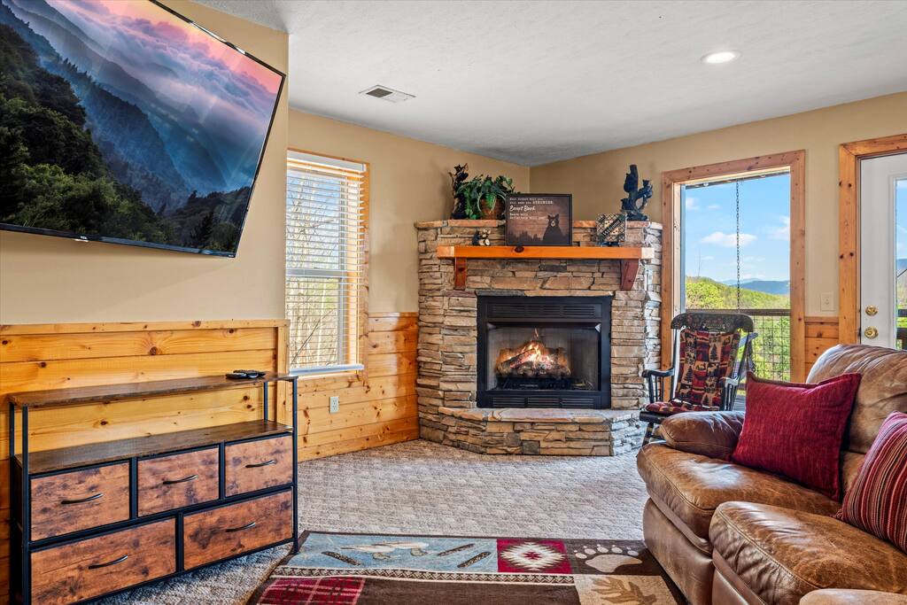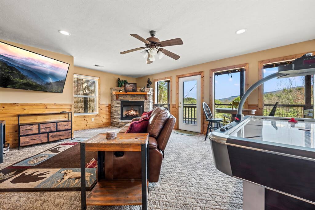 An adorable log cabin with a rocking chair front porch, Into the Mist is your family’s ideal Smoky Mountain National Park retreat just a few minutes from Pigeon Forge. This 3-bedroom cabin offers 3 full-size bathrooms and room for 9, nestled in the beauty of Wears Valley with amazing long range views. Located just 25 minutes from the family attractions of Pigeon Forge, Into the Mist has the quiet and charm for your families amazing vacation! Relax in the hot tub or enjoy a game of air hockey!Features• 3 Bed/3.5 Bathroom Cabin - Sleeps 9• Air Hockey and Game Room• Outdoor Hot Tub and Indoor Jacuzzi• Access to Honeysuckle Meadows Pool and Fishing Pond• 2 Gas Fireplaces• Cable TV and High Speed Wi-Fi• Parking for 3 vehicles depending on size• 25 Minutes from Pigeon Forge, 35 Minutes to Gatlinburg, and 15 Minutes from the Townsend Smoky Mountain EntranceLocated in Wears Valley, Into the Mist is conveniently located to everything in the Smoky Mountains! Fully paved roads and available parking for up to 3 vehicles. This 3 bedroom, 3.5 bath cabin that sleeps 9 features 3 levels. There are 4 steps up to reach the main level. On this level, you will find a fully equipped kitchen with an open floor plan and dining for 6, living area with a couch and chair, gas fireplace, and a TV above the fireplace. There is a spacious King bedroom with a mounted TV (with cable) and a fully attached bathroom with jacuzzi tub.In the upper level, you will find another spacious King bedroom, TV with cable and a fully private ensuite bathroom.As you descend downstairs into the basement you will find the large game room featuring a large TV with Roku for all your streaming desires! On the far side you will see the super fun air hockey table. Battle your family and friends to see who is the champion of the cabin! As you pass through the game room you will find the final bedroom with bunk beds and sleeping for 5. It has an attached full bathroom.Whether you go out the main level or the game room you will be greeted by an amazing deck that offers a patio swing and rocking chairs, as well as the relaxing hot tub. Offering beautiful long range views of Wears Valley and the Great Smoky Mountains!If you are looking for the perfect place to gather with friends or family, minutes away from all of the area attractions, Into the Mist would be your ideal vacation haven. Into the Mist is located 6 mins from Honeysuckle Meadows pool (open May to October) and fishing pond.Don't miss out --- book this beautiful family cabin with amazing views today!You will have access to the entire cabin during your stay!We are available through the AirBnB app, text message and phone call.Into the Mist is located in Wears Valley with amazing views of the Smoky Mountains. The roads are paved but do have an incline as you ascend to the top.All roads are paved to our cabin and can be reached by any vehicle.Weather Related: The weather in Tennessee can be unpredictable. We appreciate if all guest be aware of any weather impacts to their stay. We are not responsible for maintaining the conditions of roads, decks, and driveways in the event of snow, ice, rain, etc.