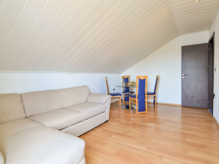 Apartment block "Josip". 2.5 km from the centre of Vodice, 700 m from the centre of Tribunj, 300 m from the sea, 300 m from the beach, in a cul-de-sac. For shared use: barbecue. In the house: internet access, washing machine (for shared use, extra). Parking at 250 m. Shop 400 m, supermarket 2.5 km, restaurant 3 km, bus stop "Tribunj" 700 m, pebble beach 300 m."Josip", 2-room apartment 50 m2, on the top floor. Living/dining room with sloping ceilings with satellite TV and air conditioning. Exit to the balcony. 1 room with sloping ceilings with 1 bed and 1 double bed. Kitchen in the entrance (1 hot plate, oven, dishwasher, 3 gas rings, toaster, kettle, microwave, freezer, electric coffee machine). Shower/WC. No heating option. Facilities: Internet (WiFi, free). Please note: non-smoking house. Maximum 2 pets/ dogs allowed.