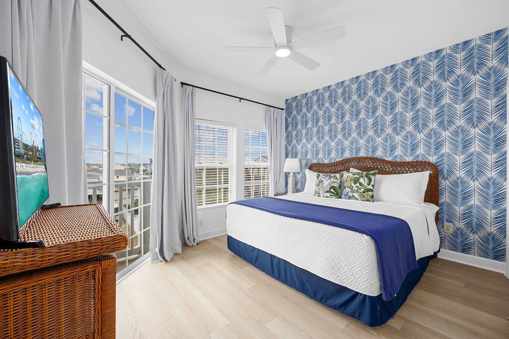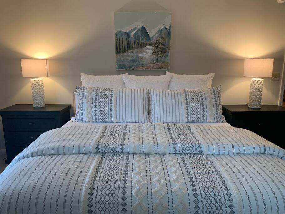 Each bedroom has comfortable beds dressed with mattress covers, pillows, bedding & linens, dresser, night stands with lamps and closets.