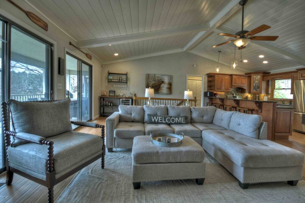 @MountainLakeBeach presents our popular Lake Nottely cottage with terrific Mountain View’s and year round deep water. Beautifully renovated 2000 sq ft lakeside cottage has 3 bedrooms and 3 full bathrooms sleeping up to 8 people (6 adults max) and is dog friendly. We provide a Weber gas grill, a fully stocked kitchen, linens and bedding, Flat screen TV, fast WiFi and Seasonal water toys (2 tandem kayaks, 2 paddle board and lily pad, - Boat NOT included)