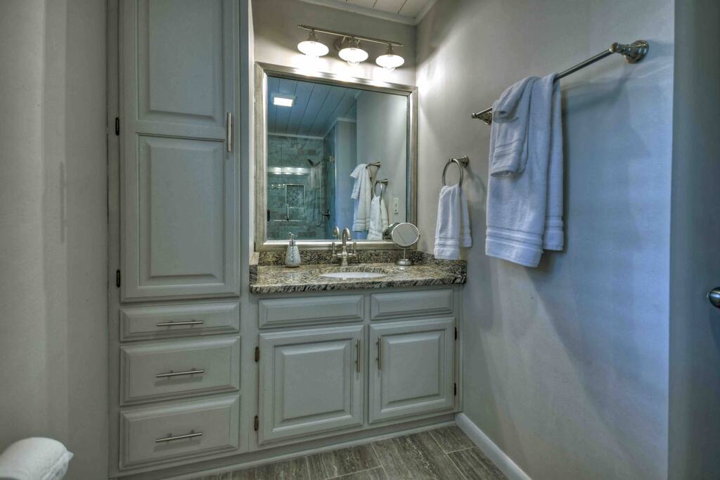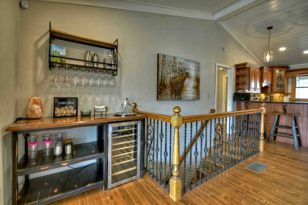Terrace level has TV room with 55” flat screen TV, fireplace, pool table, laundry washer and dryer and full bathroom. A bedroom with a full size over queen size bunk bed, walk-in closet and sliding glass doors to Lakeview’s. Also from this level is the Garage access includes extra fridge and water toys (2 tandem kayaks, 2 paddle boards and lily pad and life vests). Please note both the garage & exterior have security cameras.