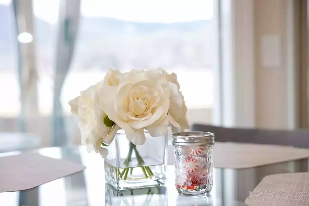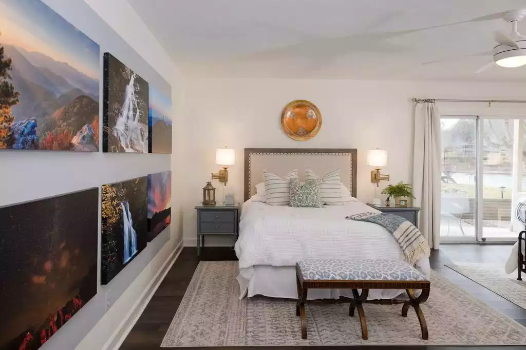 Entry to the suite is lakeside, giving you your own entrance. The suite also includes large den with 3 plush leather reclining sofas, an eating/game table, and a 60-inch smart TV. (We offer live TV via ATT Direct stream, plus other ad-free streaming apps: Netflix, Amazon Prime, etc.)