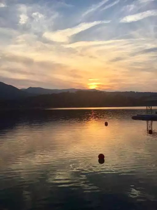 Enjoy uninterrupted sunrise and sunset views of water and mountains from a premium location on Lake Chatuge. Book direct & save. The property covers the entire point so it feels secluded, yet oh-so-convenient! Located 2.4 miles from Georgia Mountain Fairgrounds, Pickleball courts, and half mile from the grocery store and downtown Hiawassee.