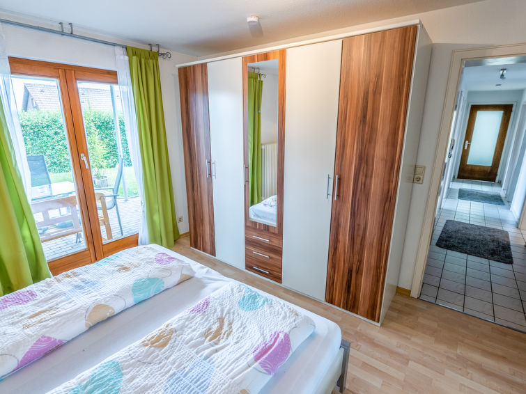 Child friendly single-family house "Langes Leben / Al-Khalid". On the outskirts, 500 m from the centre, in a quiet position, 500 m from the edge of the forest, 6 km from the lake. Private: garden with lawn. In the house: storage room for bicycles, central heating system. Beverage service on request (extra). Parking (for 3 cars) at the house. Supermarket 4 km, restaurant 750 m, bakery 3 km, bicycle rental 10 km, bus stop 500 m, railway station "Löffingen" 5 km, outdoor swimming pool, indoor swimming pool 500 m, bathing lake "Kirnbergsee" 6 km. Golf course (18 hole) 25 km, riding stable 7 km, walking paths from the house 50 m, ski lift 800 m, cross country ski track 500 m, children's playground 600 m. Nearby attractions: Freiburg 45 km, Donaueschingen 20 km. Well-known ski regions can easily be reached: Feldberg 35 km. Well-known lakes can easily be reached: Kirnbergsee 6 km, Titisee 23 km, Schluchsee 39 km. Hiking paths: Wutachschlucht, Gauchachschlucht, Schwarzwald, Feldberggebiet. Please note: the owner has a dog."Langes Leben / Al Khalid", 3-room apartment 83 m2, on the lower ground floor. Beautiful and modern furnishings: living/dining room with satellite TV (flat screen), CD-player and hi-fi system. Exit to the terrace. 1 room with 1 french bed (140 cm, length 200 cm). 1 double bedroom. Exit to the garden, to the terrace. Kitchen (oven, dishwasher, 4 ceramic glass hob hotplates, toaster, kettle, microwave, electric coffee machine) with small dining table. Bath/shower, sep. WC. Large terrace. Terrace furniture, barbecue (portable), box-room. Facilities: washing machine, children's high chair, hair dryer. Internet (WiFi). Please note: non-smokers only. Private entrance, smoke alarm, fire extinguisher. Bookings accepted for holiday purposes only.