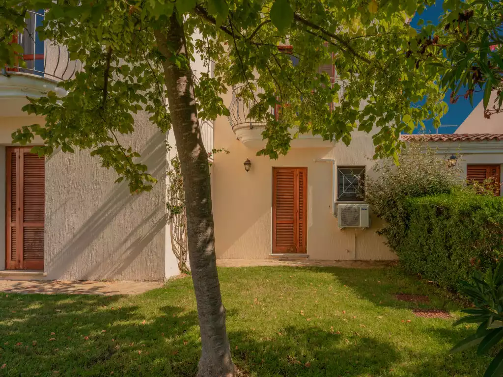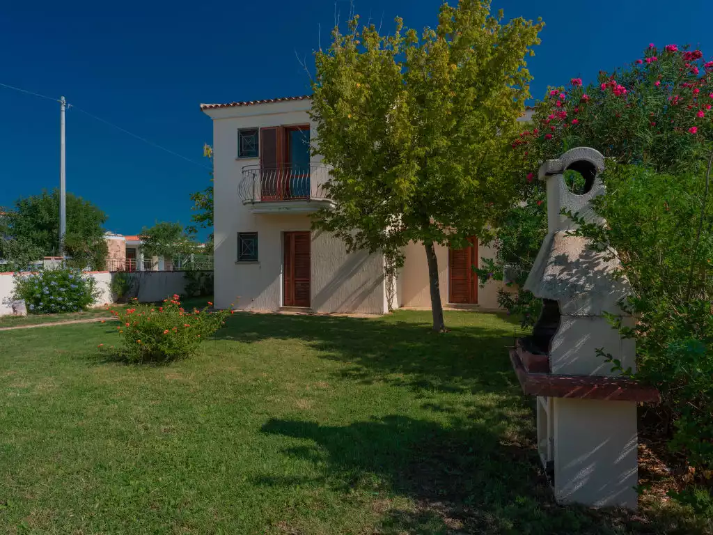 Residence "Le Dimore di Budoni". 1.5 km from the centre of Budoni, 10 km from the centre of San Teodoro, 31 km from the centre of Olbia, 250 m from the sea, 250 m from the beach. For shared use: property, well-kept garden with plants, meadow. Outdoor shower, barbecue, children's playground. In the complex: reception, WiFi, bicycle rental. Shop, supermarket, restaurant 500 m, bar 50 m, bus stop 850 m. The photo is just an example."Le Dimore di Budoni", 3-room apartment 43 to 50 m2 on 2 levels, on the ground floor. Practical furnishings: living/sleeping room with 1 double sofabed, dining table and TV. 1 small room with 1 x 2 bunk beds. Open kitchen (dishwasher, Gas stove, 4 gas rings, toaster, kettle, microwave, freezer). Shower/bidet/WC. Air-conditioning, forced-air heating. Upper floor: 1 double bedroom. Shower/bidet/WC. Air-conditioning, forced-air heating. Patio. Terrace furniture. Facilities: washing machine, iron, mosquito net, baby cot (extra), hair dryer. Parking (1 car). 1 small pet/ dog allowed. IT090091B4000F1614