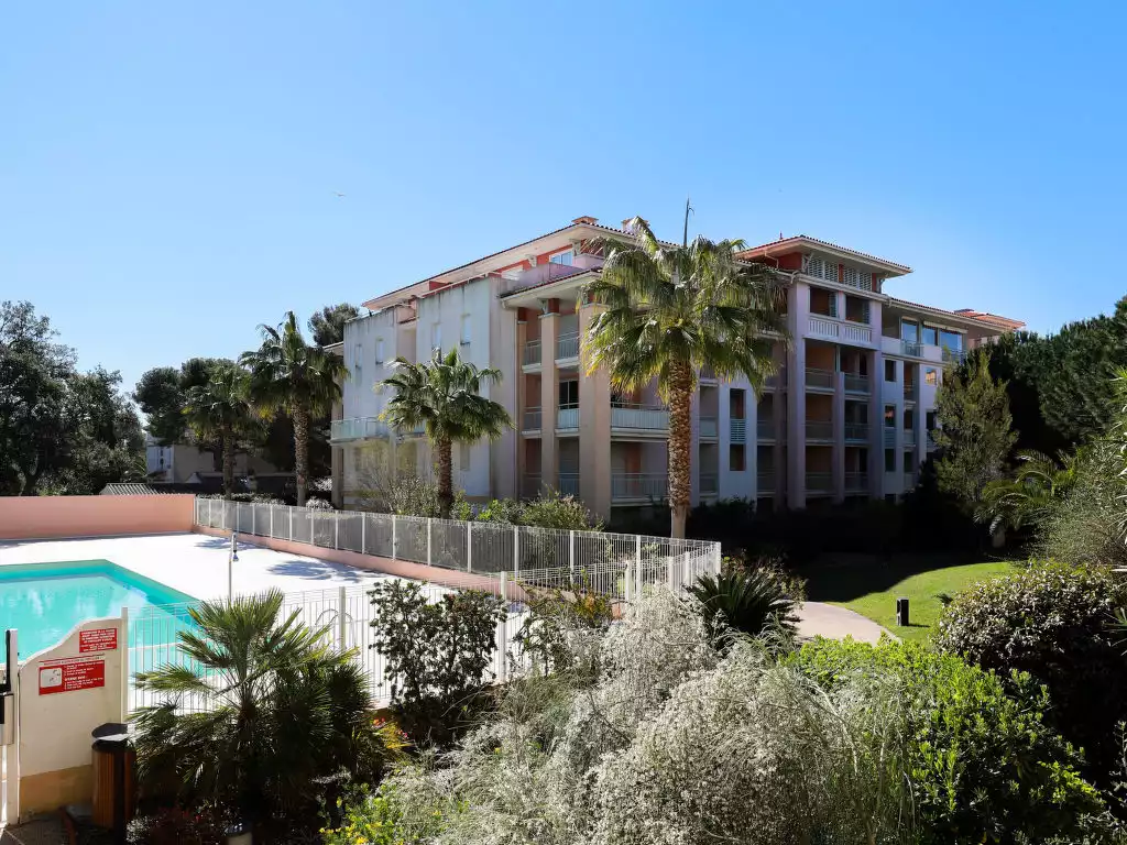 Modern, beautiful residence "Les Calanques du Parc", 4 storeys, built in 2003, surrounded by trees. In the resort, 200 m from the centre, in the residential district, 300 m from the sea, 300 m from the beach. For shared use: park (fenced), swimming pool angular fenced (seasonal availability: 15.May. - 28.Sep. pool opening hours: 09:00-20:00). Children's pool. In the complex: lift. Roofed, parking. Shop 350 m, shopping centre 5 km, 5 minute walk to the centre, bus stop "Grand Parc" 260 m, railway station "Fréjus" 6 km, sandy beach 500 m, park "Areca" 100 m, diving center 6 km, thermal baths "Thalasso de Port Fréjus" 6 km. Sports harbour 500 m, golf course (18 hole) 8 km, sailing school 7 m, riding stable 1 km, sports centre 500 m. Nearby attractions: Lunapark, Aqualand 5 km, Fréjus 6 km, Saint Raphaël 8 km, St Tropez 30 km, Cannes 47 km, Nice 71 km. Well-known ski regions can easily be reached: Auron, Isola 2000 150 km. Well-known lakes can easily be reached: Lac de St Cassien 45 km, Lac du Du Verdon 90 km. Hiking paths: Estérel 16 km, Sentier du Littoral 300 m. The keys‘ handover takes place by the agency Interhome in Saint Aygulf.2-room apartment 35 m2 on 2nd floor. Object suitable for 2 adults + 2 children. Beautiful furnishings: living/dining room with panoramic window with 1 double sofabed (1 x 140 cm, length 200 cm), TV (flat screen), fan and electric shutters. Exit to the terrace. 1 room with 2 beds (80 cm, length 200 cm), fan and electric shutters. Exit to the terrace. Open kitchen (dishwasher, 3 ceramic glass hob hotplates, toaster, kettle, freezer, electric coffee machine, combination microwave). Bathroom, sep. WC. Heating. Terrace 15 m2, roofed. Terrace furniture. Partial view of the sea. Facilities: washing machine, iron, hair dryer. Internet (WiFi, extra). Parking space n A24 (roofed, 1 car). Please note: suitable for families. TV only FR. Smoke alarm. FJS1054HT