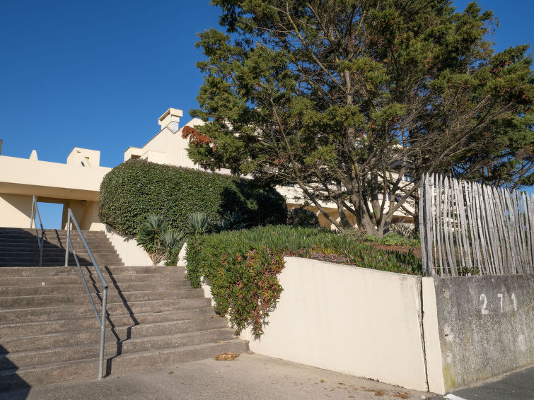 Lacanau-Ocean: Residence "Les Océanides", 4 storeys. 300 m from the centre, 20 m from the sea, 6 km from the lake, 20 m from the beach, direct access to the beach. Shop 300 m, grocery 50 m, supermarket 300 m, restaurant 50 m, bar 200 m, bakery 100 m, pedestrian zone 200 m, bicycle rental 500 m, bus stop "Salle l'Escoure Océan" 700 m, sandy beach "Plage sud" 20 m, bathing lake "Moutchic" 6 km. Golf course (18 hole) 4 km, sailing school 10 km, tennis 2 km, riding stable 15 km. Nearby attractions: Bordeaux 60 km, Dune du Pilat 80 km, Arcachon 80 km, Saint Emilion 80 km, Lacanau Ville 10 km. Well-known lakes can easily be reached: Lac du moutchic 10 km, Lac de Maubuisson 20 km. Hiking paths: Chemin de Saint Jacques de Compostelle 500 m.1-room apartment 18 m2, on the ground floor. Living/dining room with 1 double sofabed (140 cm), TV (flat screen). Exit to the terrace. Kitchenette (2 hot plates, oven, dishwasher, toaster, kettle, microwave, electric coffee machine, Capsules for coffee machine (Senseo)). Shower/WC. Electric heating. Terrace, west facing position. Terrace furniture. No view of the sea. Facilities: washing machine. Internet (WiFi, extra). Parking space n 2. Please note: non-smokers only. Maximum 1 pet/ dog allowed. Smoke alarm.