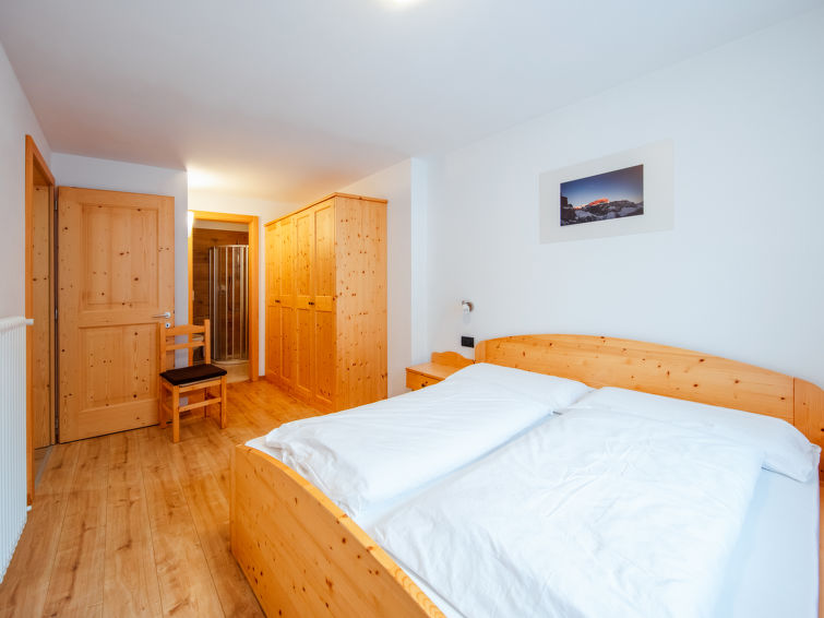 Mazzin 4 km from Campitello: Semi-detached house "Mantel", 1'363 m a.s.l.. 150 m from the centre of Mazzin, 6 km from the centre of Canazei. In the house: storage room for skis, washing machine (for shared use, extra), ski boot dryer. Parking (for 6 cars) on the premises. Grocery 150 m, supermarket 4 km, restaurant 200 m, bus stop 300 m, indoor swimming pool 7.3 km. Ski lift 4.5 km, gondola lift 4.5 km, ski bus stop 170 m, cross country ski track 300 m. Well-known ski regions can easily be reached: Col Rodella (Sella Ronda) 4.5 km, Buffaure 4.5 km."Mantel", 9-room semi-detached house 200 m2 on 4 levels. Bright, beautiful and wooden furniture furnishings: living room with satellite TV. 1 double bedroom with shower/bidet/WC. 1 double bedroom. Shower/bidet/WC. Wood heating. On the lower ground floor: dining room with dining nook. Kitchen-/living room (oven, dishwasher, 5 induction hot plates, toaster, kettle, freezer, electric coffee machine). Sep. WC. Upper floor: living room. 1 double bedroom with shower/bidet/WC. 1 double bedroom. Shower/bidet/WC. Top floor: living/sleeping room with sloping ceilings with 1 sofabed. 1 room with sloping ceilings with 1 bed (80 cm), 1 double bed. Bath/shower/WC. Gas heating. Beautiful view of the mountains. Facilities: iron, baby cot. Internet (WiFi, extra). Please note: non-smokers only. Bed layout is flexible. There are more sleeping options available than the maximum number of people allowed which may, however, not be exceeded. IT022113C2ORQGBZBN,IT022113C28SCITPSY