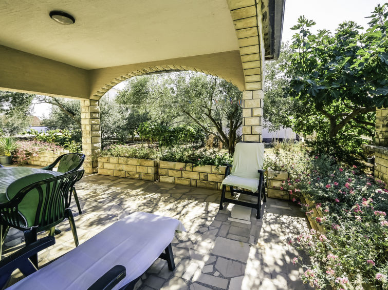 Beautiful 2-family house "Marija". 300 m from the centre, in a quiet, sunny position, 150 m from the sea. For shared use: garden. Private: outdoor shower, barbecue. In the house: internet access. Parking at the house. Shop, restaurant 300 m, bus stop 1.7 km, pebble beach, shingle beach 150 m. Shaded carpark in the courtyard.3-room apartment 60 m2, on the ground floor. Living/dining room with satellite TV. Entrance hall with air conditioning. 1 room with 1 bed and 1 french bed. 1 room with 1 french bed. Kitchenette (1 hot plate, oven, 3 gas rings, microwave, electric coffee machine). Shower/WC. Heating (extra). No heating option. Large terrace 28 m2, roofed. Terrace furniture. Facilities: Internet (WiFi, free).