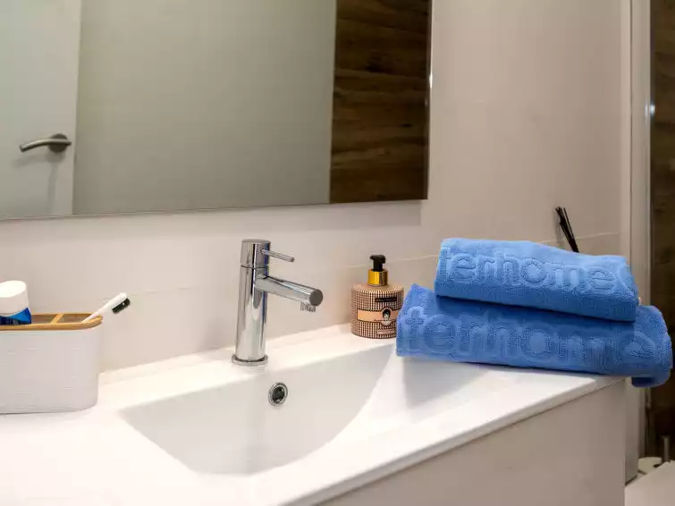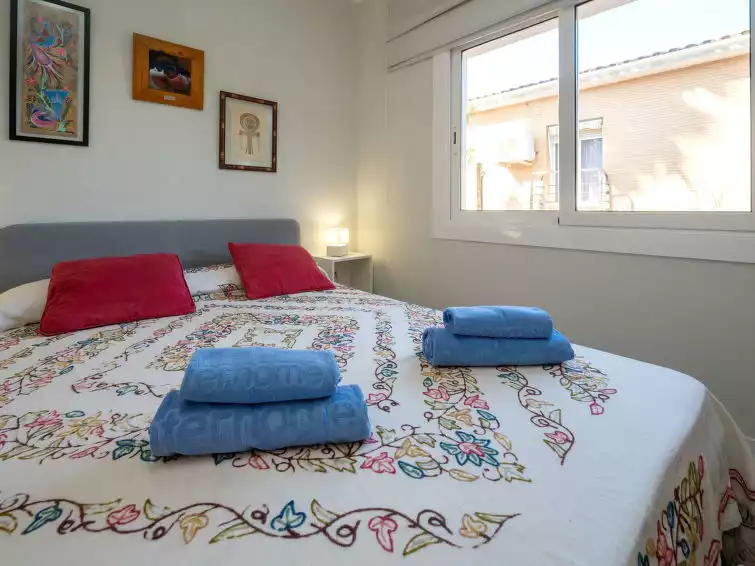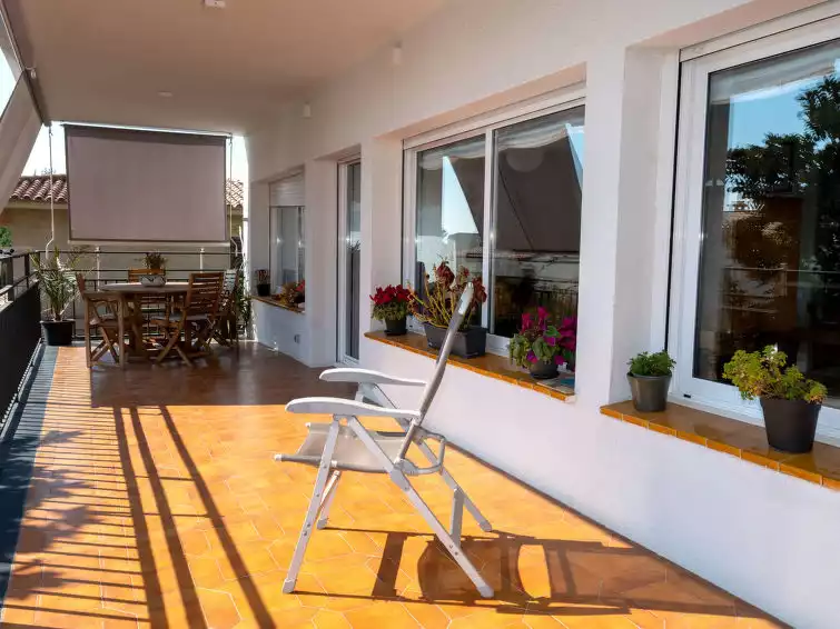 Beautiful, comfortable apartment block. In a quiet position, 1.4 km from the sea, 1.4 km from the beach. Public parking on the road. Supermarket 450 m, restaurant, bar 240 m, bus stop "Illa Fantasia" 200 m, railway station "Premia de Mar" 2.1 km. Sports harbour 1.5 km, marina 1.5 km. Nearby attractions: Barcelona 23 km, Illa Fantasia 290 m, Mataro 9 km, Roca Village 19 km. The owner does not accept any youth groups. Neighbourhood highly sensitive to noise. Quietness and good behaviour expected."Millenium", 4-room apartment 106 m2 on 1st floor. Comfortable and modern furnishings: living/dining room with dining table and digital TV. Exit to the terrace. 1 room with 1 french bed (150 cm, length 190 cm), shower/WC. 1 room with 1 french bed (135 cm, length 190 cm). 1 room with 1 pull-out bed (2 pers. 2 x 90 cm, length 190 cm). Kitchen (5 hot plates, oven, dishwasher, toaster, microwave, electric coffee machine). Shower/WC. Large terrace 28 m2. Terrace furniture, barbecue (portable). Facilities: washing machine, dryer, iron, children's high chair, baby cot for up to 2 year olds, hair dryer. Internet (WiFi, free). Suitable for families. HUTB-066824 // Reg. Nr.: ESFCTU00000809400032821100000000000000000HUTB-0668248