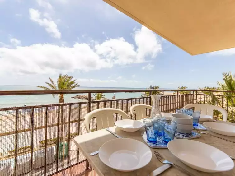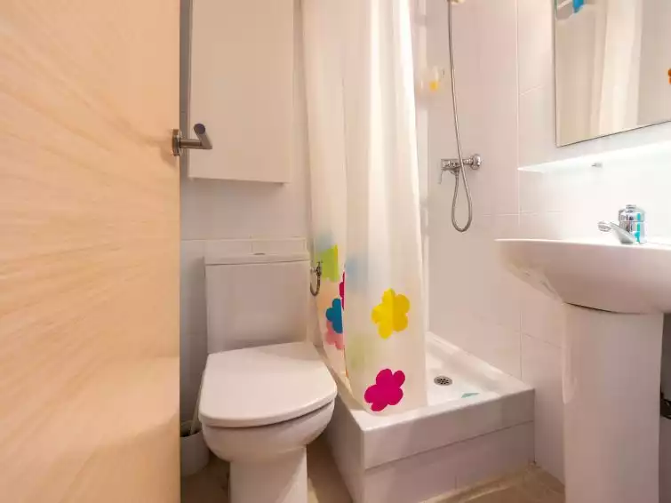 Beautiful, comfortable apartment block. 10 m from the sea, 10 m from the beach. For shared use: property (fenced), swimming pool angular (seasonal availability: 01.Jan. - 31.Dec.). Children's pool, table tennis, children's playground. In the house: lift. Supermarket 750 m, restaurant, bar 60 m, bus stop "estacion de tren Cunit" 1.5 km, railway station "Cunit" 1.5 km, sandy beach "Valparaiso" 10 m. Nearby attractions: Barcelona 59 km, Sitges 19 km, Tarragona 45 km, Port Aventura 56 km. The owner does not accept any youth groups. Neighbourhood highly sensitive to noise. Quietness and good behaviour expected."Miramar", 4-room apartment 97 m2. Comfortable and beautiful furnishings: living/dining room with dining table, digital TV and electric heating. Exit to the balcony. 1 room with 1 french bed (135 cm, length 190 cm), electric heating. 1 room with 2 beds (90 cm, length 190 cm). 1 room with 1 x 2 bunk beds (90 cm, length 190 cm). Kitchen (oven, 4 ceramic glass hob hotplates, toaster, microwave, electric coffee machine). Shower/WC, shower/bidet/WC. Balcony. Balcony furniture. Marvellous view of the sea. Facilities: washing machine, iron, hair dryer. Please note: no parking. HUTT-069784