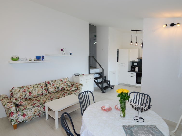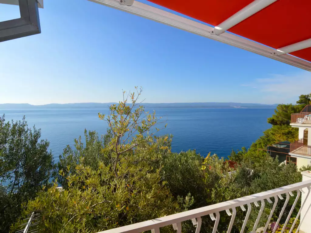 Pisak 16 km from Omiš: 2-family house "Mirela". 500 m from the centre of Pisak, in a quiet, sunny position on a slope, 50 m from the sea, 50 m from the beach. For shared use: property 500 m2 (fenced) with trees. In the house: internet access. Parking at the house on the premises. Shop 520 m, supermarket 19 km, restaurant, café 500 m, bus stop 1.6 km, pebble beach 500 m, rocky beach 50 m.3-room apartment 50 m2 on 2 levels on 1st floor. Living/dining room with 1 sofabed (140 cm, length 200 cm), TV (flat screen). Exit to the terrace. Open kitchen (oven, 4 ceramic glass hob hotplates, kettle, microwave, freezer, electric coffee machine). Exit to the balcony. Upper floor: entrance hall with air conditioning. 1 room with 1 french bed (160 cm, length 200 cm). 1 room with 2 beds (90 cm, length 200 cm). Shower/WC. No heating option. Balcony, terrace 10 m2. Terrace furniture. Beautiful view of the sea. Facilities: Internet (WiFi, free).