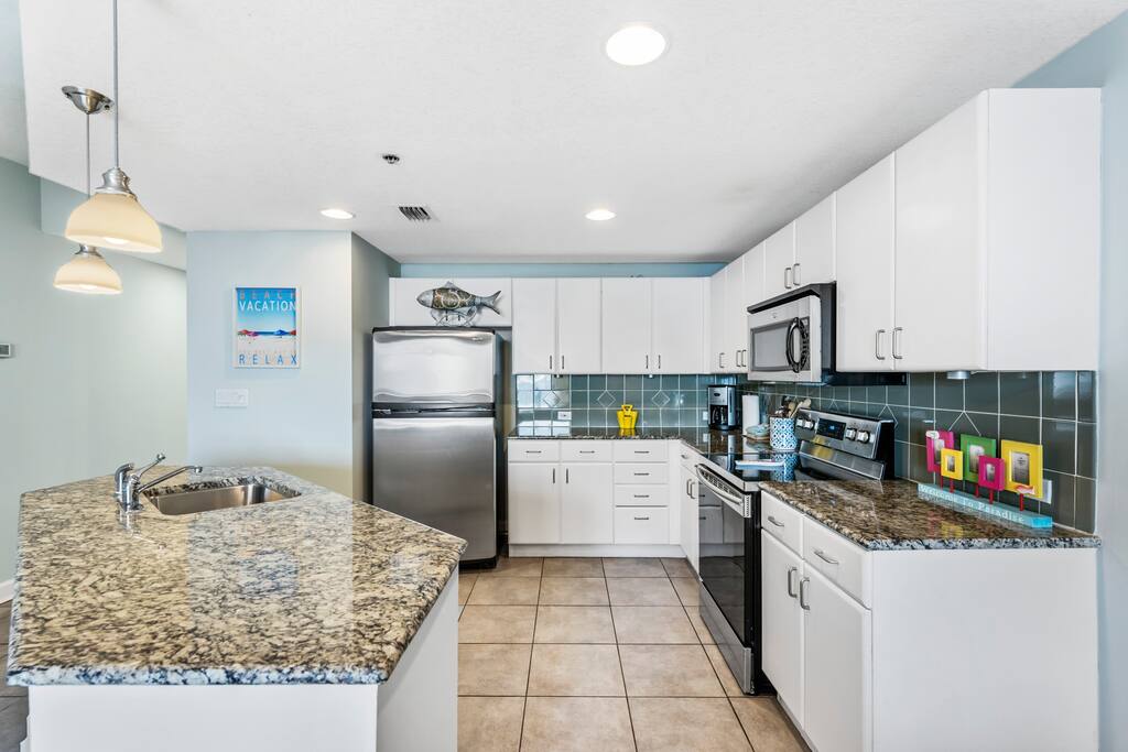 Let's start our tour in the spacious, bright, contemporary open design living area, which combines the entertaining living room, fully equipped kitchen, and inviting dining area. Move around the 7th-floor condo to discover the highly comfortable bedroom that offers the ultimate rest and relaxation after a day of experiencing the picturesque Panama City Beach!