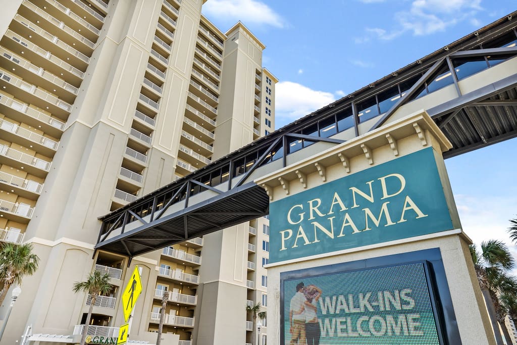 The condo is on the 7th floor of the second tower in the beachfront Grand Panama condominium complex in the heart of Panama City Beach.