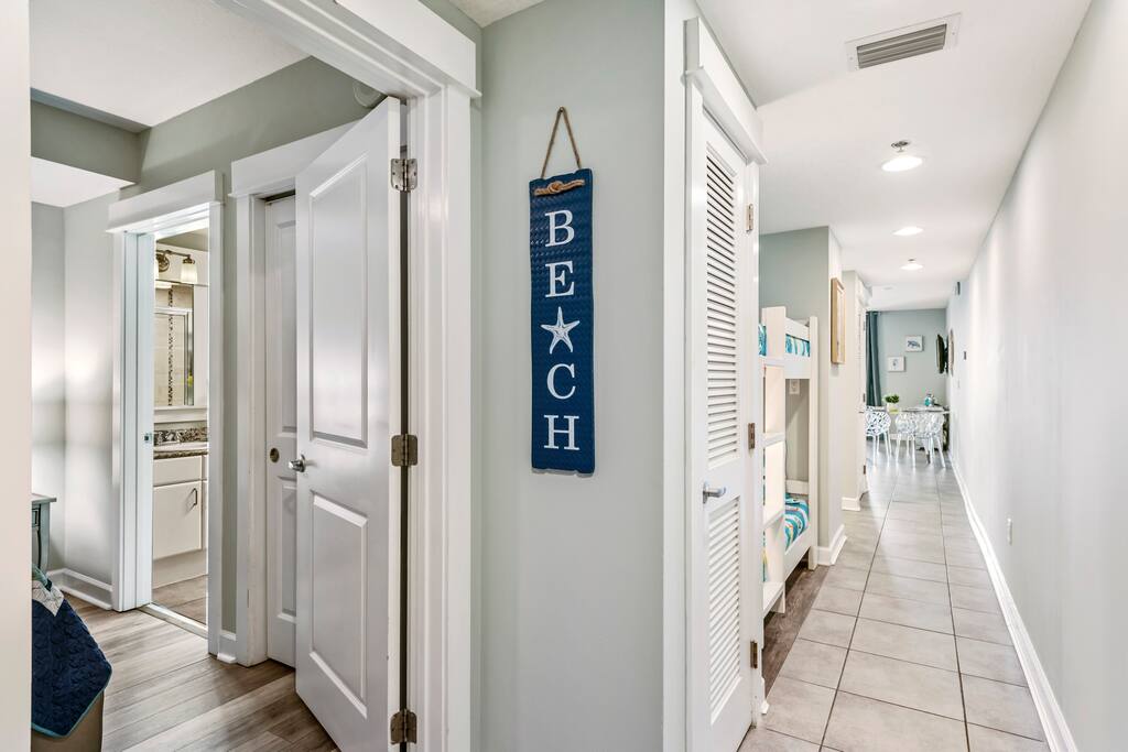 The hallway offers additional sleeping space with a comfy bunk bed.