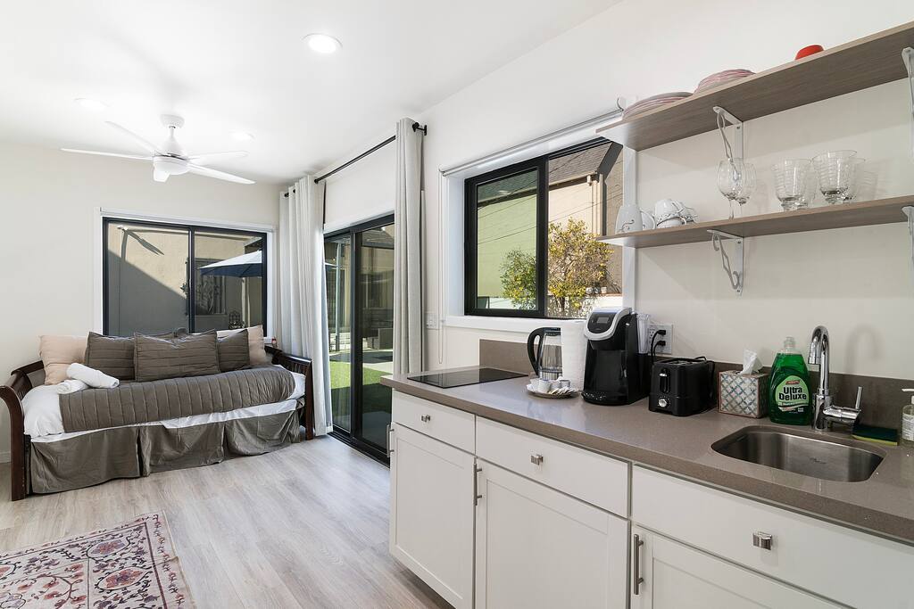 This brand-new guest suite offers a stylish and comfortable retreat for solo travelers or couples. With a full size bed, a sofa daybed, and a fully equipped kitchen, it’s perfect for short or extended stays. Located near The Grove, Miracle Mile, and top attractions, enjoy modern comfort in a prime LA location.