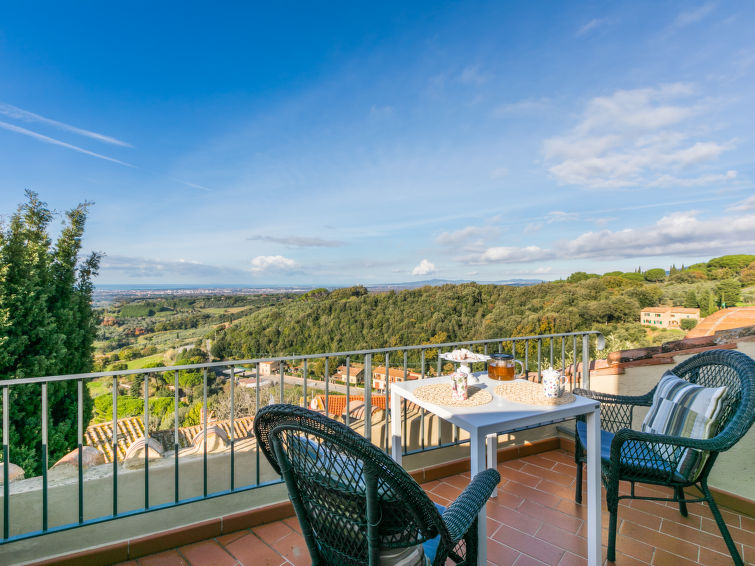 Small residence "Il Montaleo". 5 apartments in the residence. In the district of Il Montaleo 2 km from the centre of Casale Marittimo, 10 km from the sea, in the countryside. For shared use: property 6'000 m2 (fenced), trees, swimming pool (14 x 7 m, seasonal availability: 21.May. - 23.Sep.). Outdoor shower, barbecue. In the house: washing machine (for shared use, extra). Roofed, parking on the premises. Shop 2 km, supermarket 7 km, bus stop 1.5 km, sandy beach "Cecina Mare" 10 km. The photo is just an example."Montaleo 2", 3-room apartment 83 m2 on 1st floor. Practical furnishings: living/sleeping room with 2 sofabeds, dining table and satellite TV. Exit to the balcony. 1 room with 1 french bed (160 cm, length 200 cm), shower/WC. 1 room with 1 french bed (160 cm, length 200 cm), shower/WC. Open kitchen (4 gas rings). No heating option. 2 balconies. Balcony furniture. Facilities: mosquito net, baby cot. Internet (WiFi, free). Please note: maximum 1 pet/ dog allowed. Private entrance. Connecting door to the apartment 5. IT050006B4PB7H5OTX