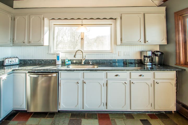 Spectacular views of Mount Washington, the Jackson Village, and the Presidential Range. One of the best views in all of Mount Washington Valley. Our home is a vintage 1965 Ski Chalet, and this means it’s full of quirks and character and that’s why we love it so much. It's clean and tidy and we are constantly working on maintenance and renovation projects. So if you are more comfortable in a sleek modern place, we gently suggest our place might not be the best fit for your holiday.