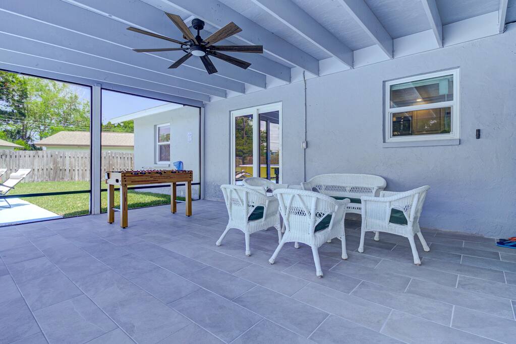 Our 4 bedroom home is thoughtfully designed and stocked with vacation rental guests in mind. If you are looking for a beach vibe home and a true Melbourne experience, you have come to the right listing. The place is creatively decorated with colorful beach decor. You will have everything you need and more when you choose to book with us! Whether you want to play board games, throw a dart, have friendly competition at the pool table and foosball table, grill and chill in the spacious backyard, or mellow in our yellow pool - there is something for everyone to enjoy.