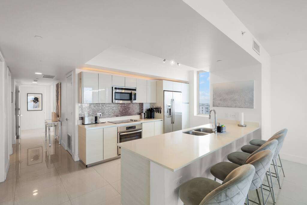 Due to Miamiโs tropical climate, insects may occasionally be present. The unit is professionally treated, and guests are advised to keep doors closed to reduce the chance of intrusion.