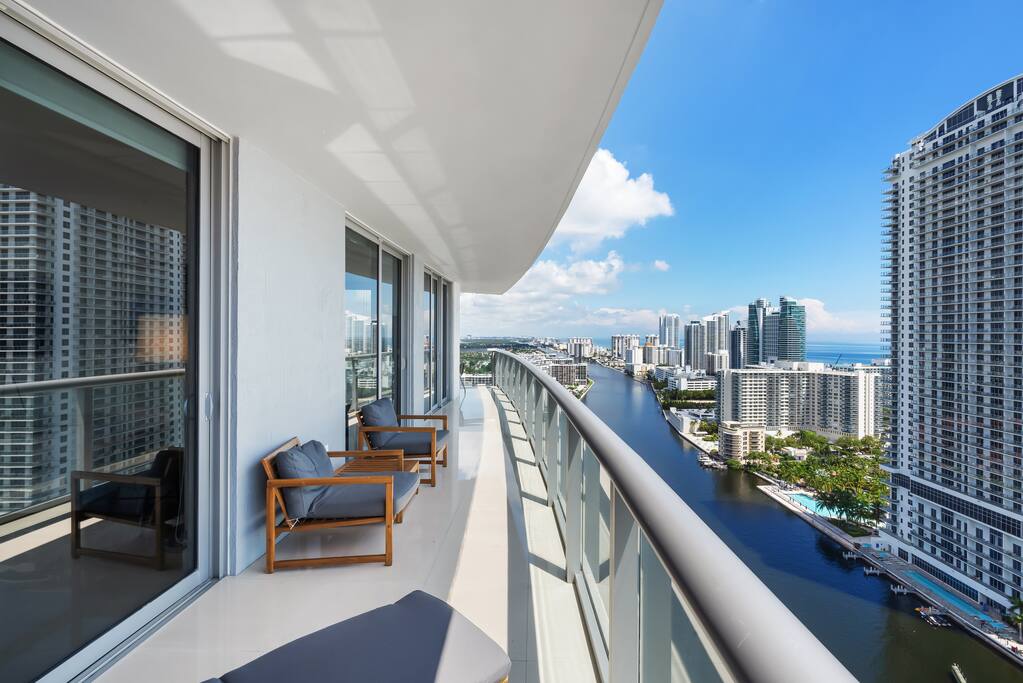The balcony invites you to unwind while taking in sweeping city and ocean views, creating the perfect spot to relax, sip your favorite drink, and enjoy the fresh coastal breeze.